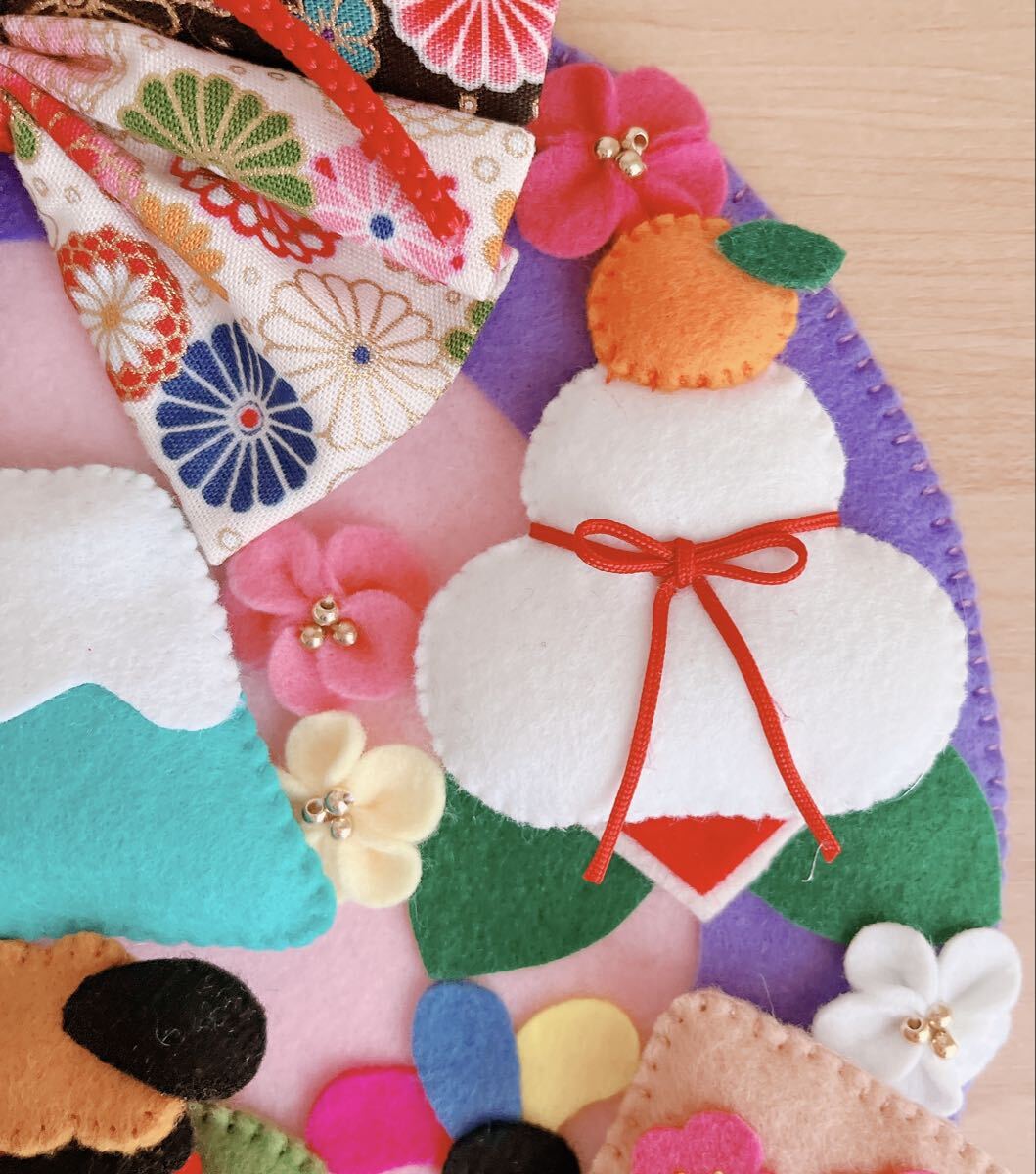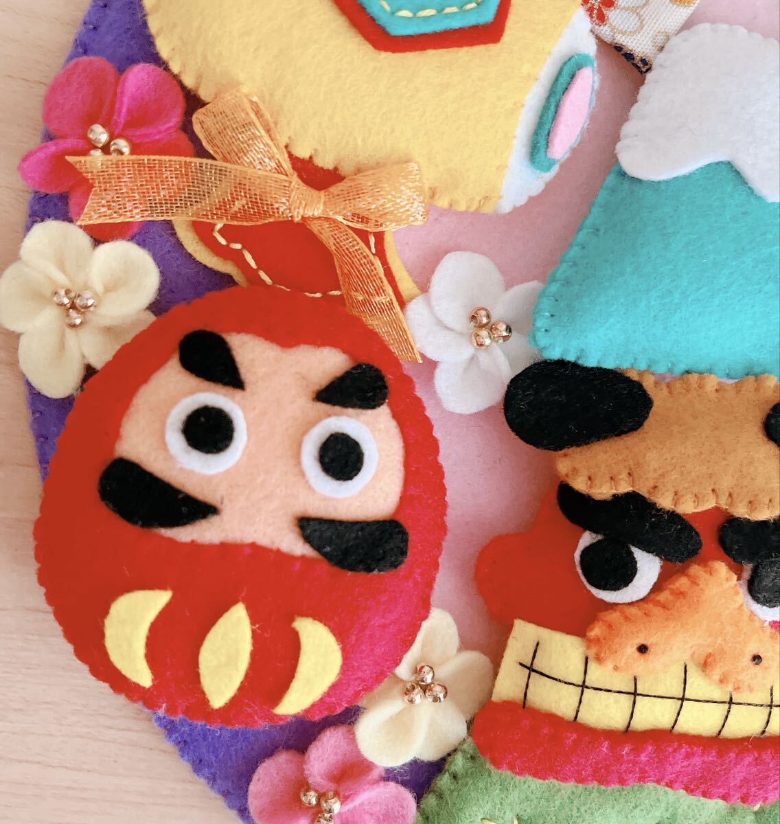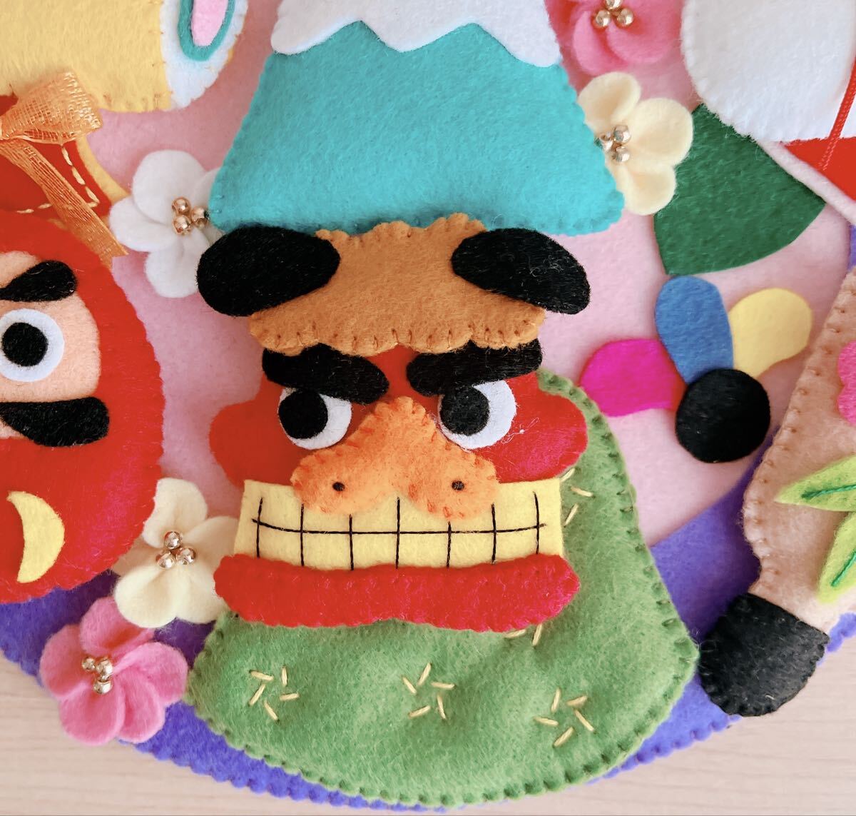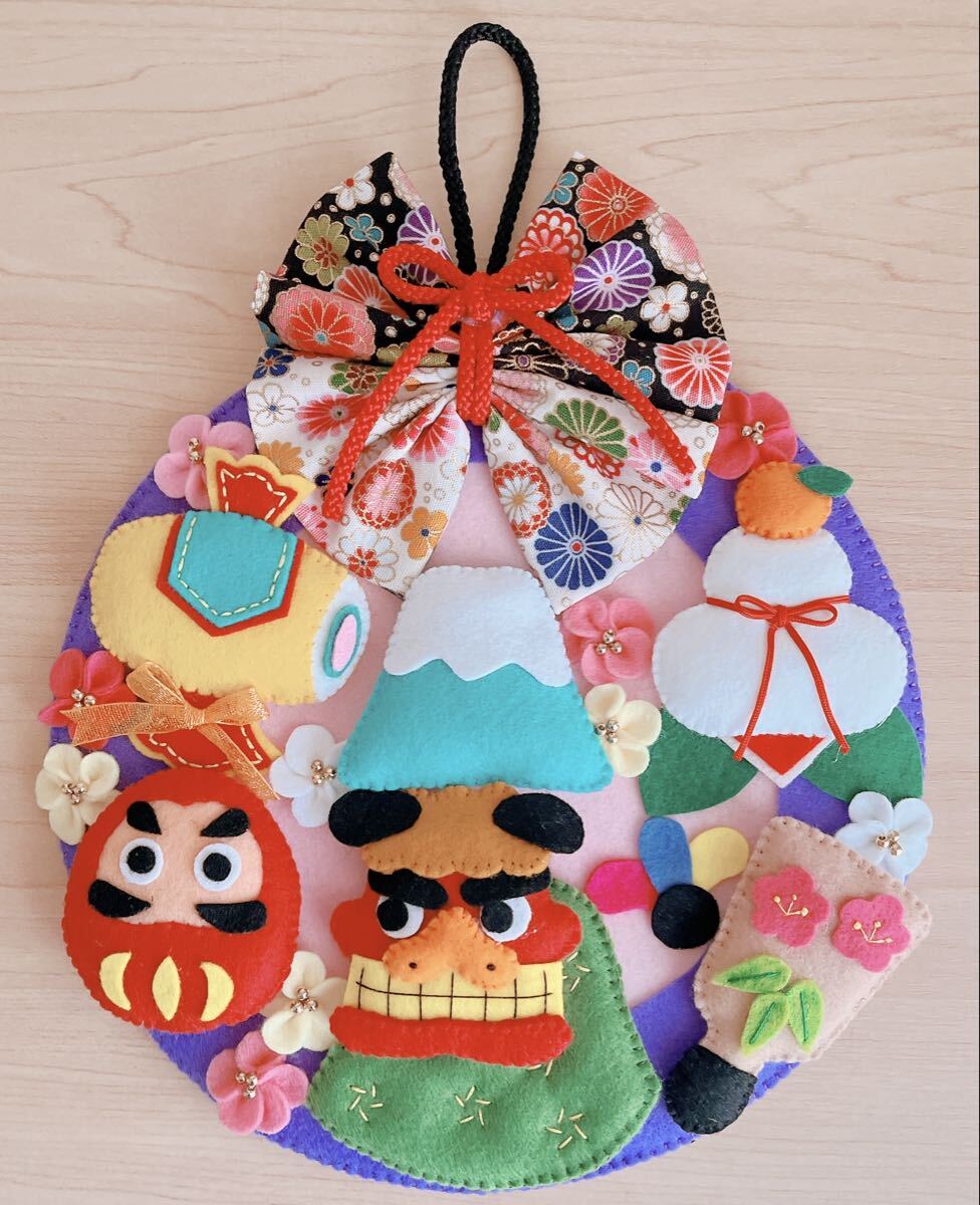 ★ハンドメイド★フェルトリース☆お正月リース☆ 獅子舞★ダルマ★富士山★うちでの小槌★羽子板☆鏡もち☆ 新年☆お部屋の飾りに