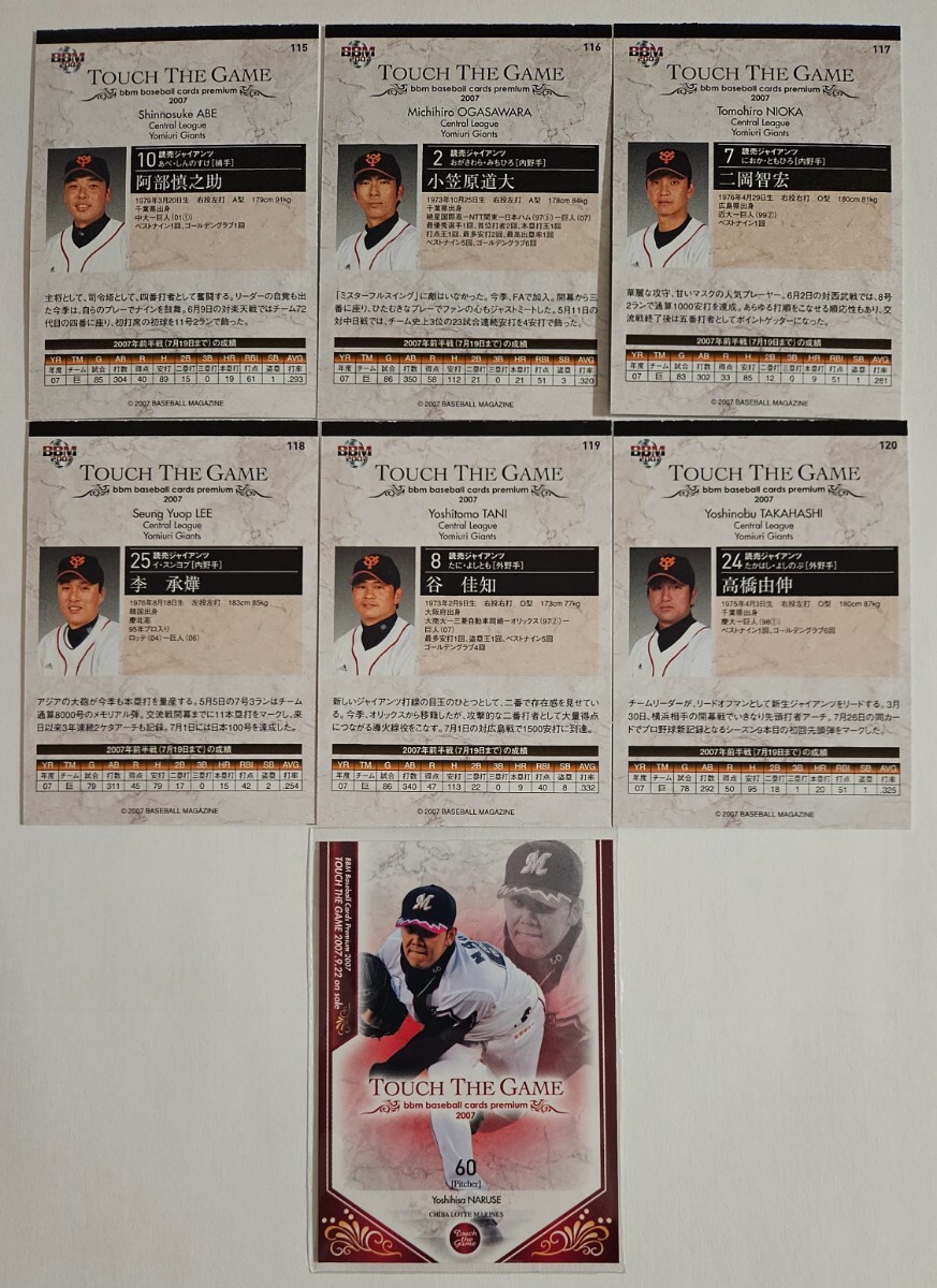 2007年BBM タッチザゲーム 巨人レギュラー12枚+プロモ小笠原道大 上原浩治、高橋尚成、阿部慎之助、高橋由伸など ジャイアンツ