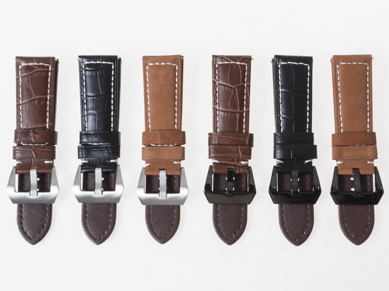 汎用 本革 腕時計 ベルト ブレスレット バンド 交換 ブラックバックル#幅24mm ワニ革風 ブラウン