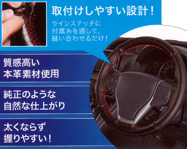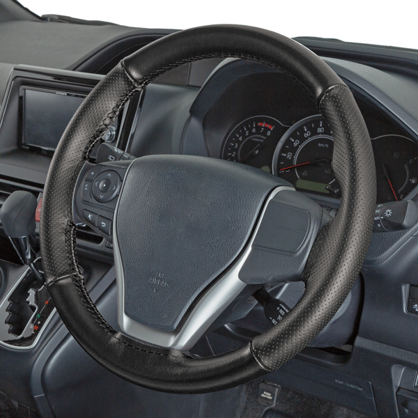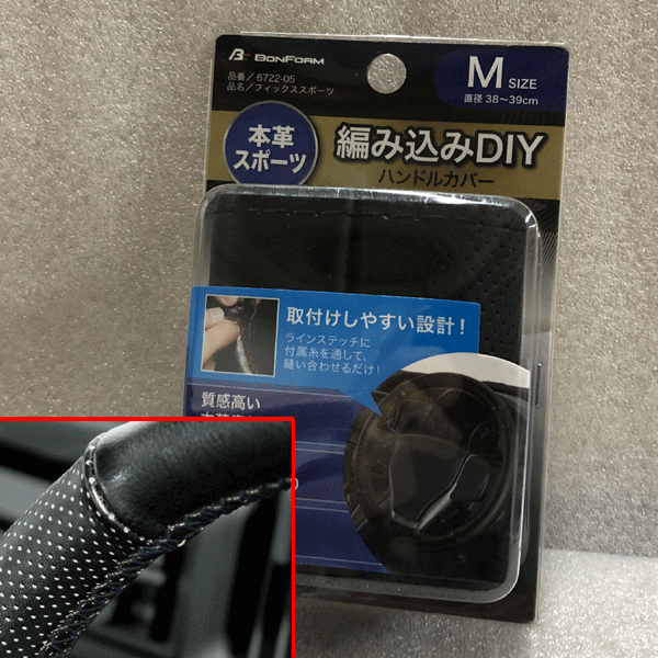 ステアリングカバー Mサイズ 普通車 ミニバン 1BOX 編み込み フィックススポーツ 本革 素材 ブラック レザー 黒 ステッチ 送料無料 訳あり