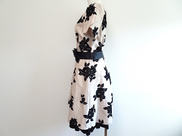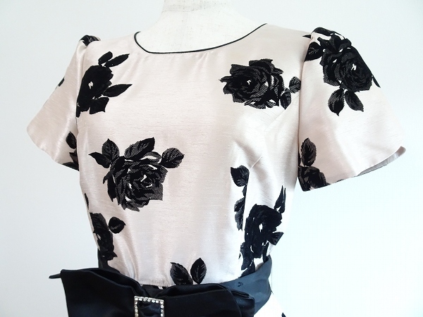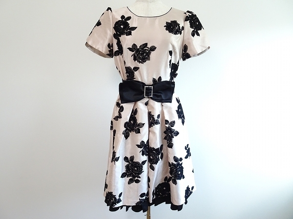#anc レストローズ L'EST ROSE ワンピース 2 ピンク 黒 バラ リボン ラインストーン 半袖 フレア フリル レディース [652092]