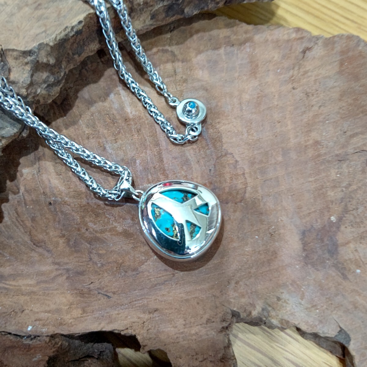 平和を願って!アリゾナ産天然トルコ石をセットしたペンダント...ピース&スマイル