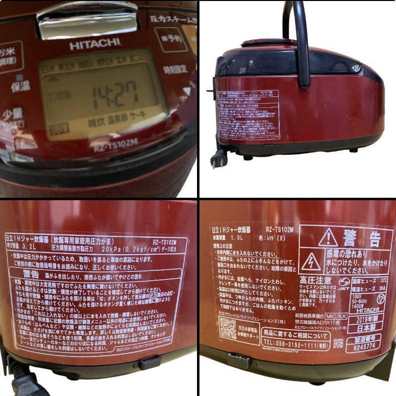 ◆中古品◆ HITACHI 日立 圧力スチーム IH炊飯器 IHジャー炊飯器 RZ-TS102M レッド 2019年製 5.5合炊 ※通電のみ確認※ P98468NL