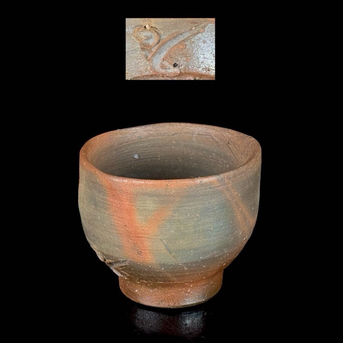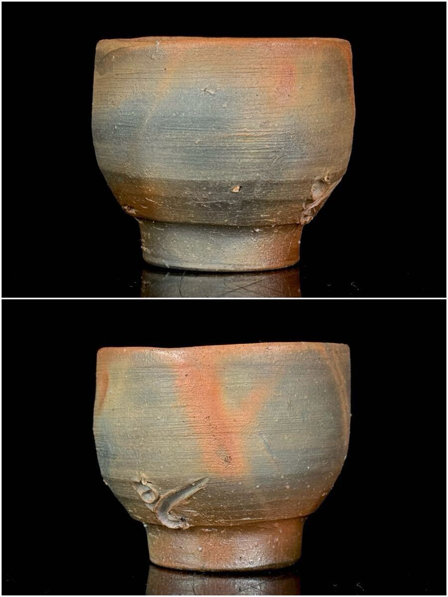 人間国宝 藤原 啓 作 備前焼 ぐい呑 猪口 盃 酒器 美品 【1b1007o32/2 0】