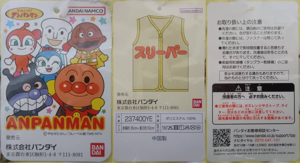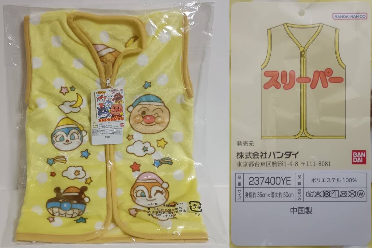 アンパンマン スリーパー イエロー 送料無料 フリース ベスト 防寒 着る毛布 お昼寝 保育園 部屋着 あんぱんまん