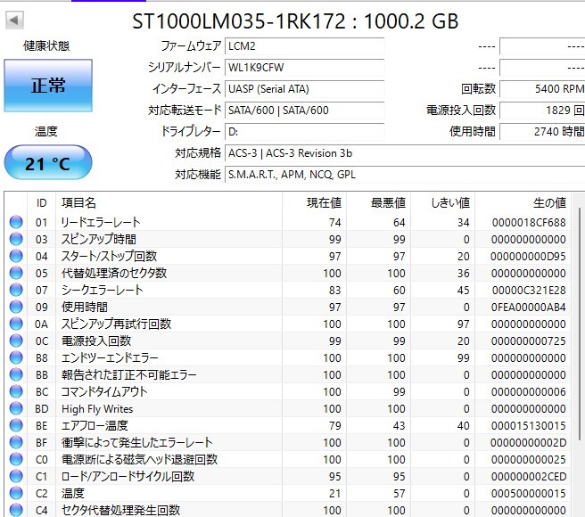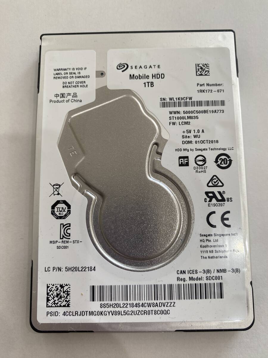 【正常2740時間】Seagate 1TB HDD 2.5 SATA ST1000LM035-1RK172