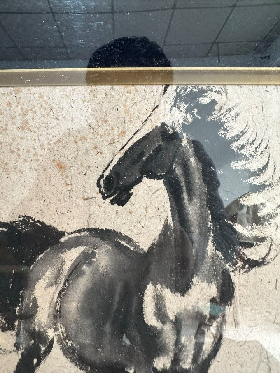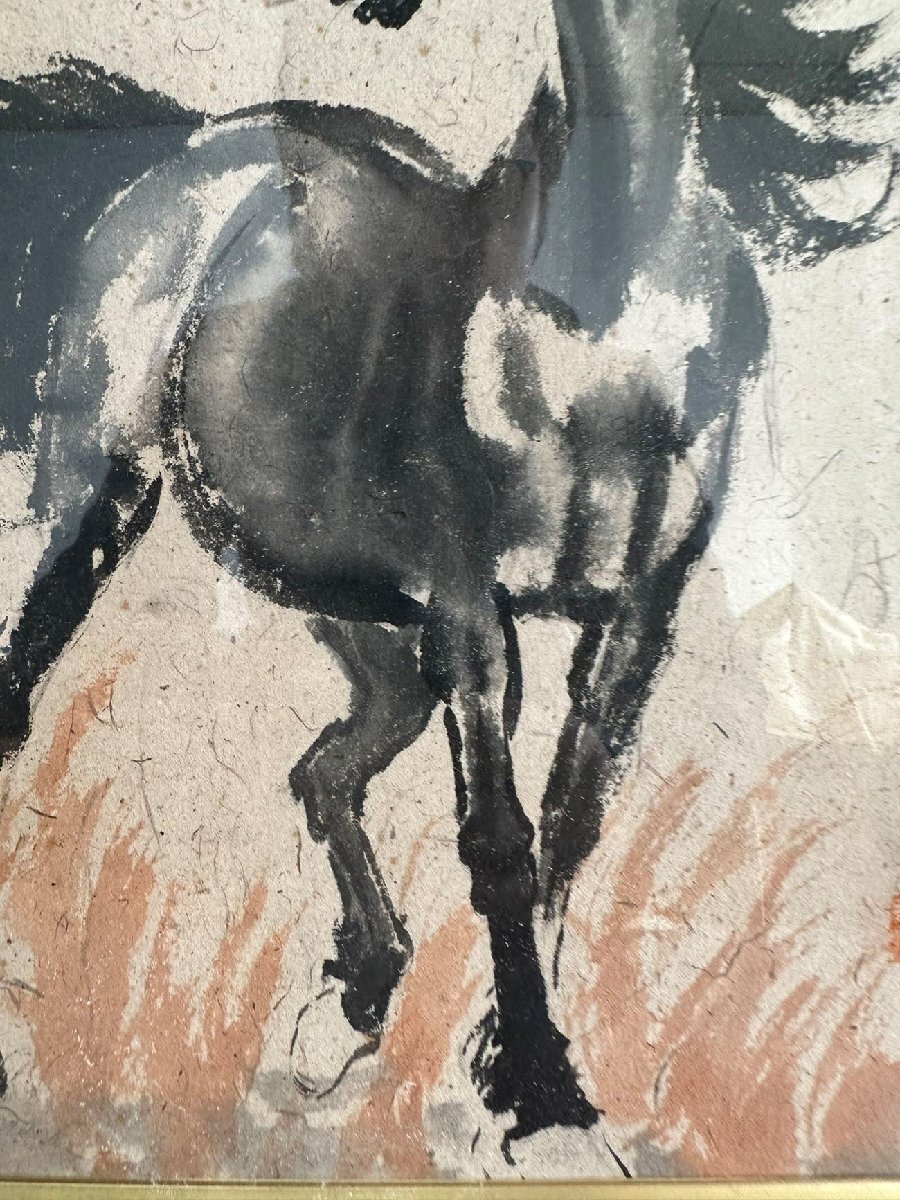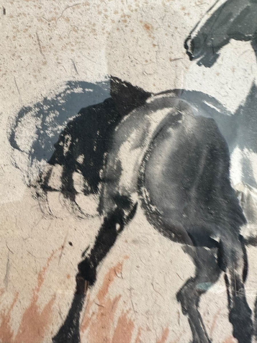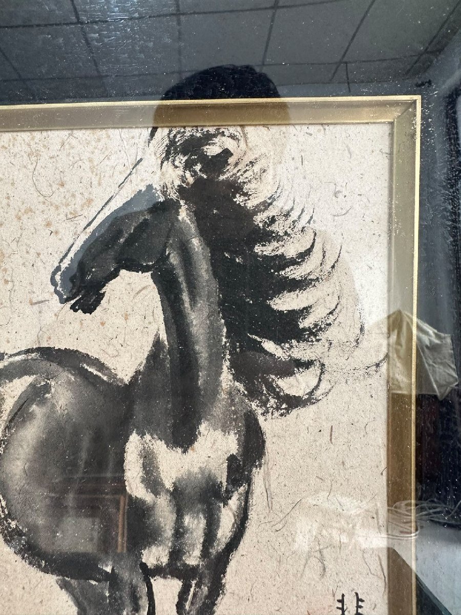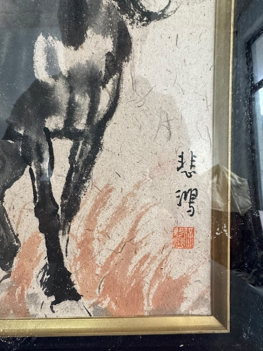 【安】中国近時代画家「徐悲鴻書」紙本「駿馬図」額装 掛軸 中国画 墨寶妙品 中国書道 古美術 359
