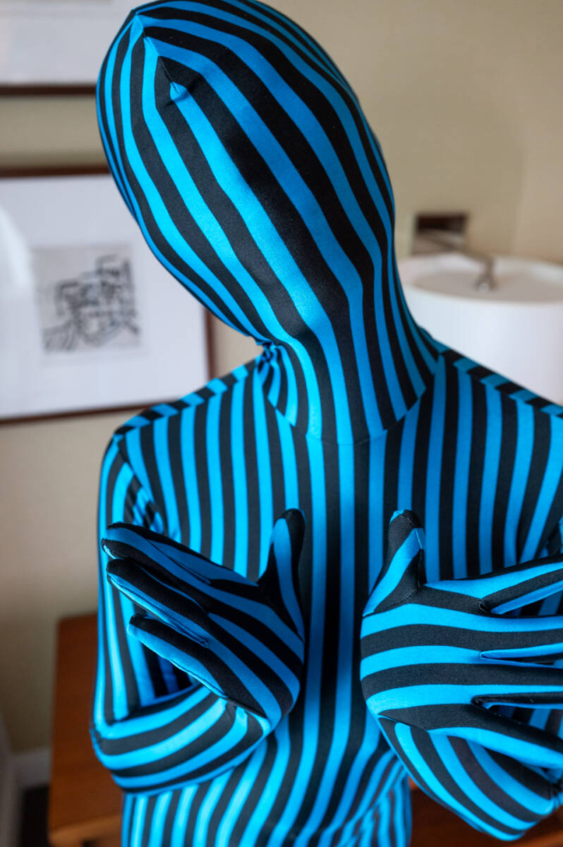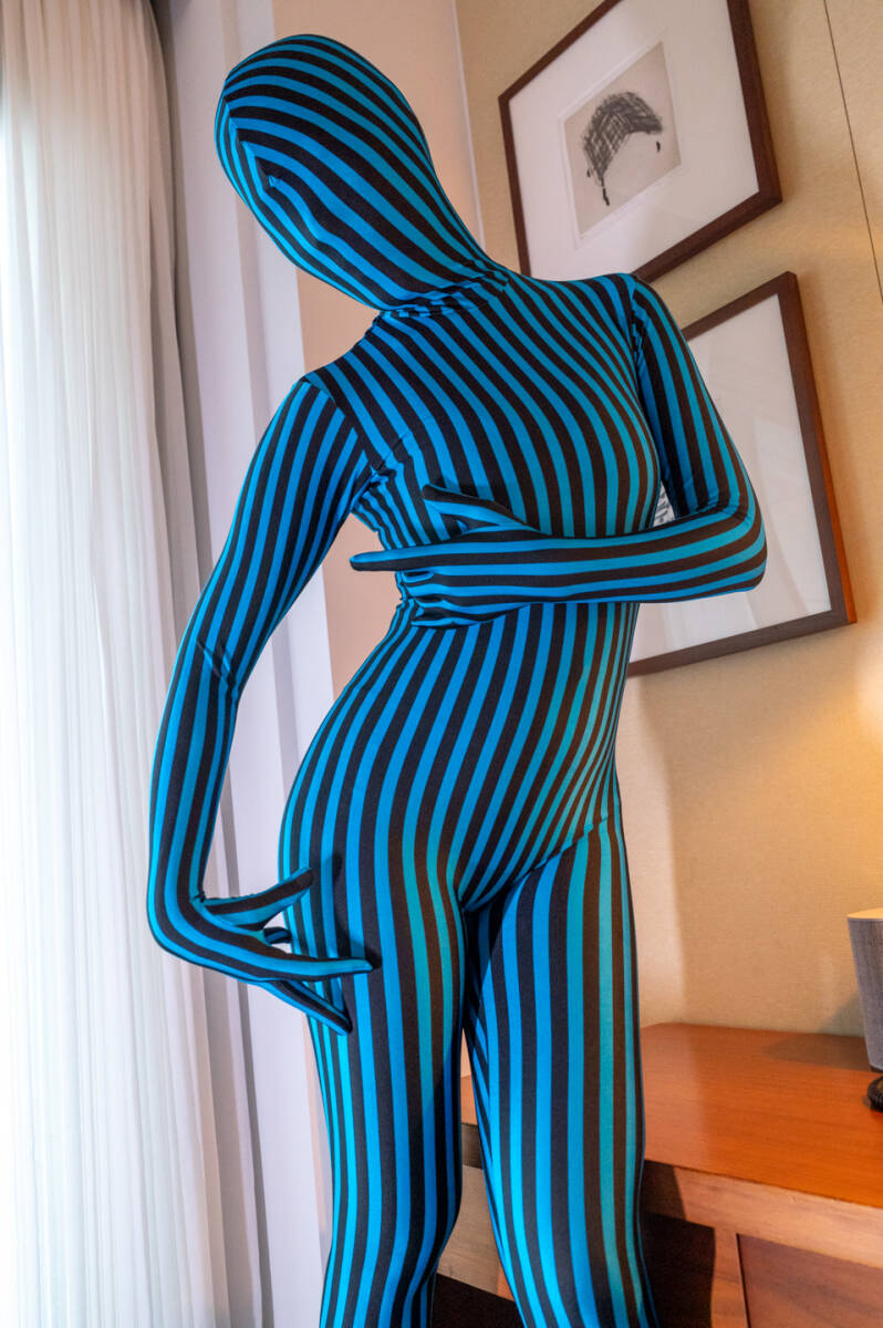 ZENTAI Blue & Black Matte Stripes Size L by Marcy & Artsong