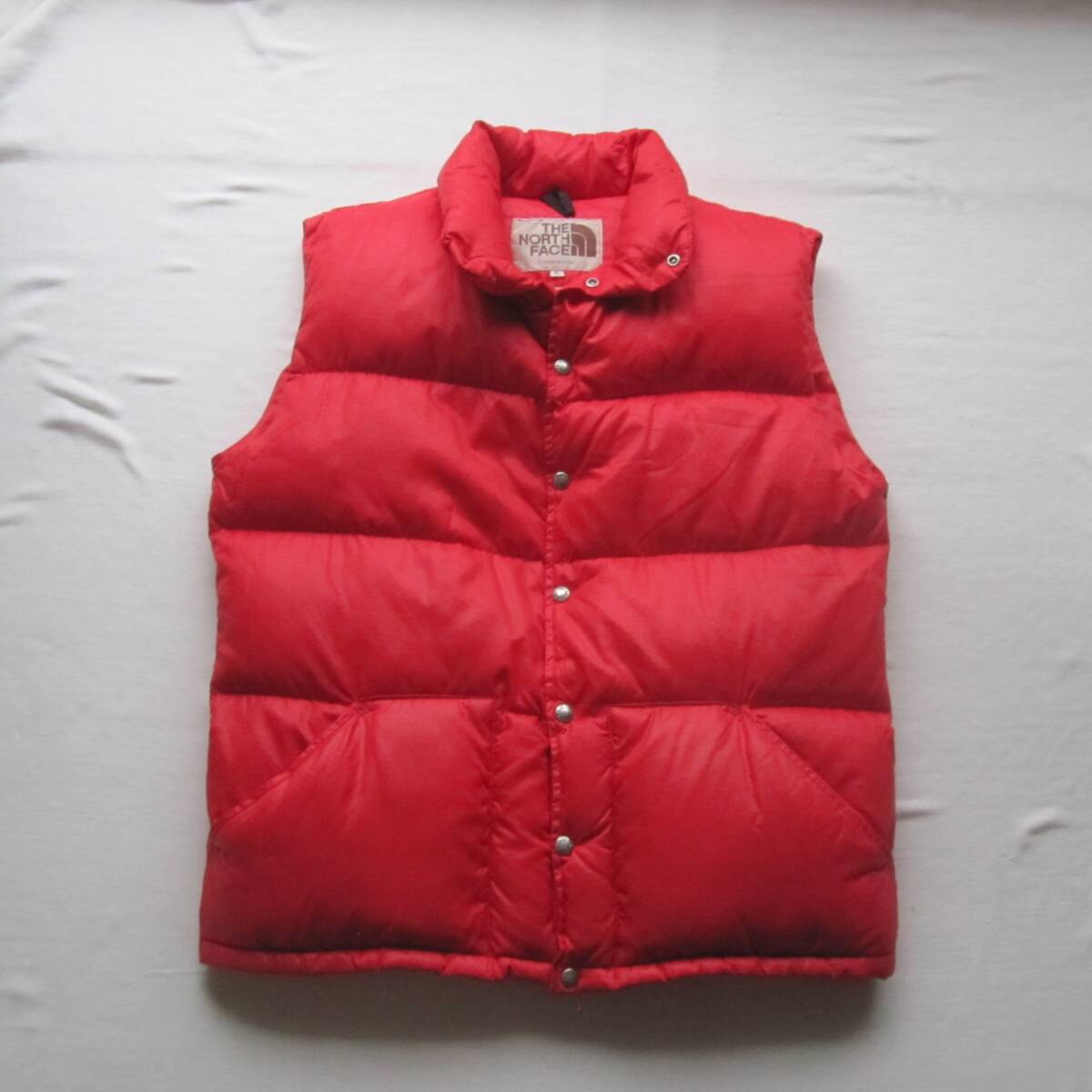 ☆ 70s ノースフェイス ダウンベスト (XL) 茶タグ リップストップナイロン / 赤 / ヴィンテージ / ブルックスレンジ