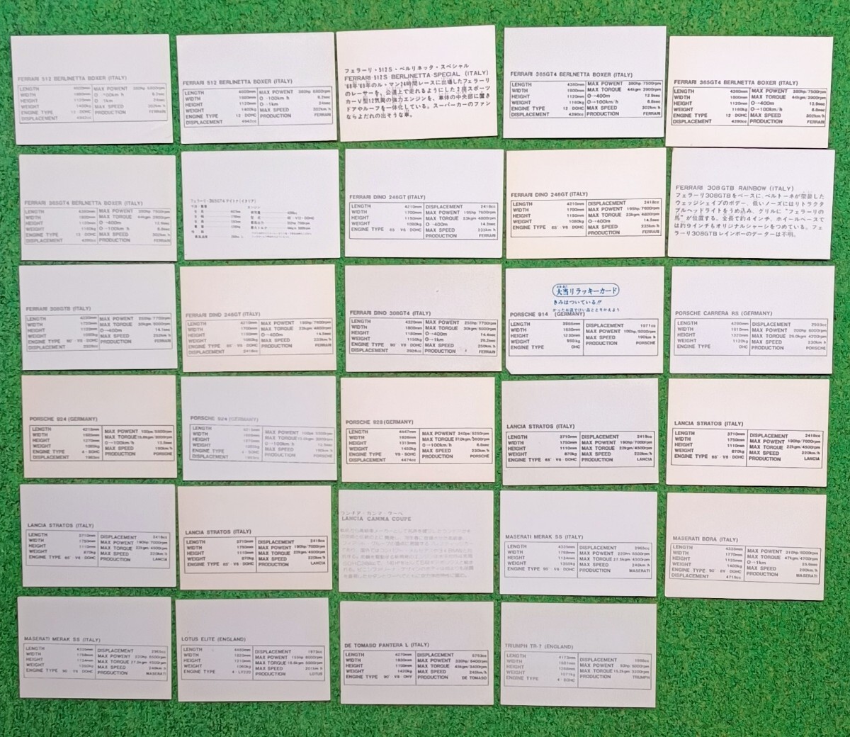 昭和スーパーカー カード29枚セット フェラーリ ポルシェ マセラティ デトマソ他 昭和レトロ 当時物