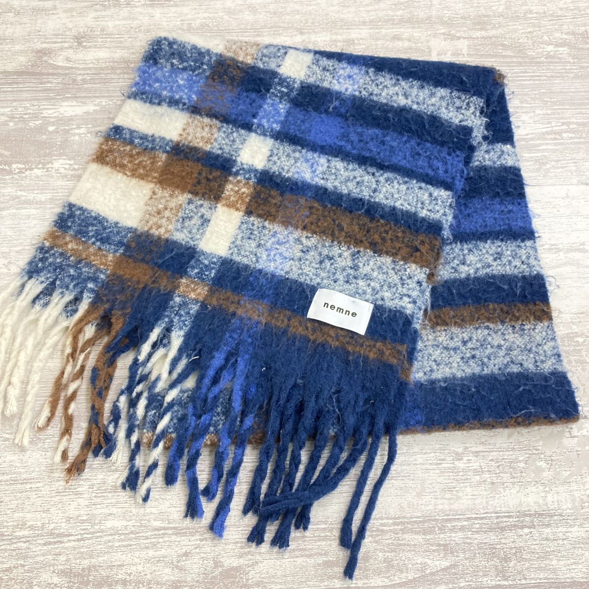 2N1691-J◆nemne ネンネ 大判シャギーマフラー◆サイズFREE ファッション小物 秋冬アイテム レディース 温かい チェック 総柄 ストール