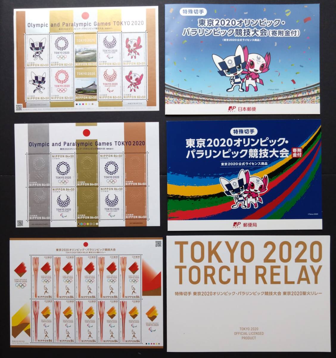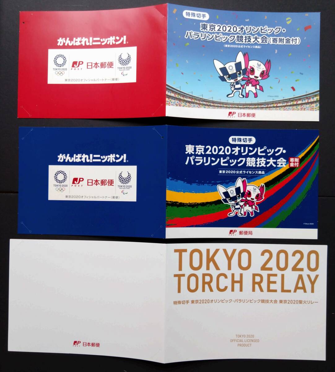 【東京2020年オリンピック・パラリンピック競技大会】『第1次(寄付金付)・第2次(寄付金付)・第3次(聖火リレー)3種セット ②』台紙 未使用