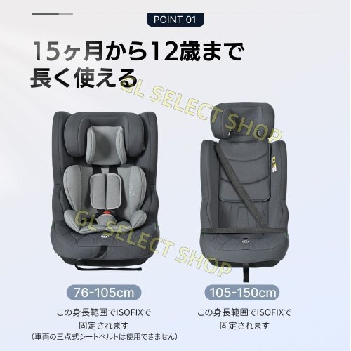 【トップテザータイプ】チャイルドシート ISOFIX 洗える 取付簡単 ジュニアシート ベビーシート キッズシート 帰省【ダークグレ】