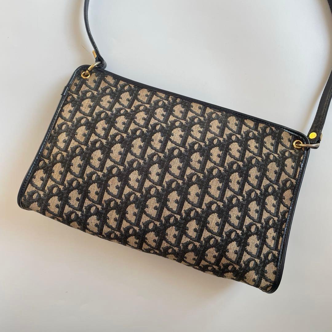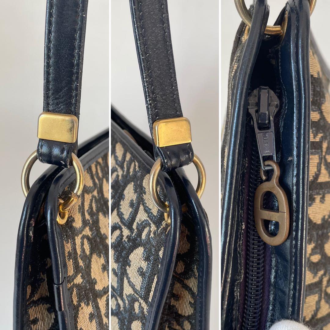 【美品】ディオール ショルダーバッグ トロッター キャンバス ネイビー 肩掛け オブリーク ロゴプレート ヴィンテージ ビンテージ オールド