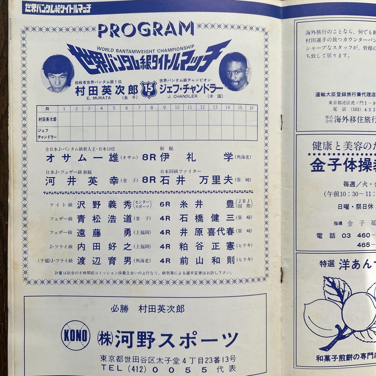 ボクシング パンフレット 世界バンタム級タイトルマッチ 村田英二郎 1981年4月5日