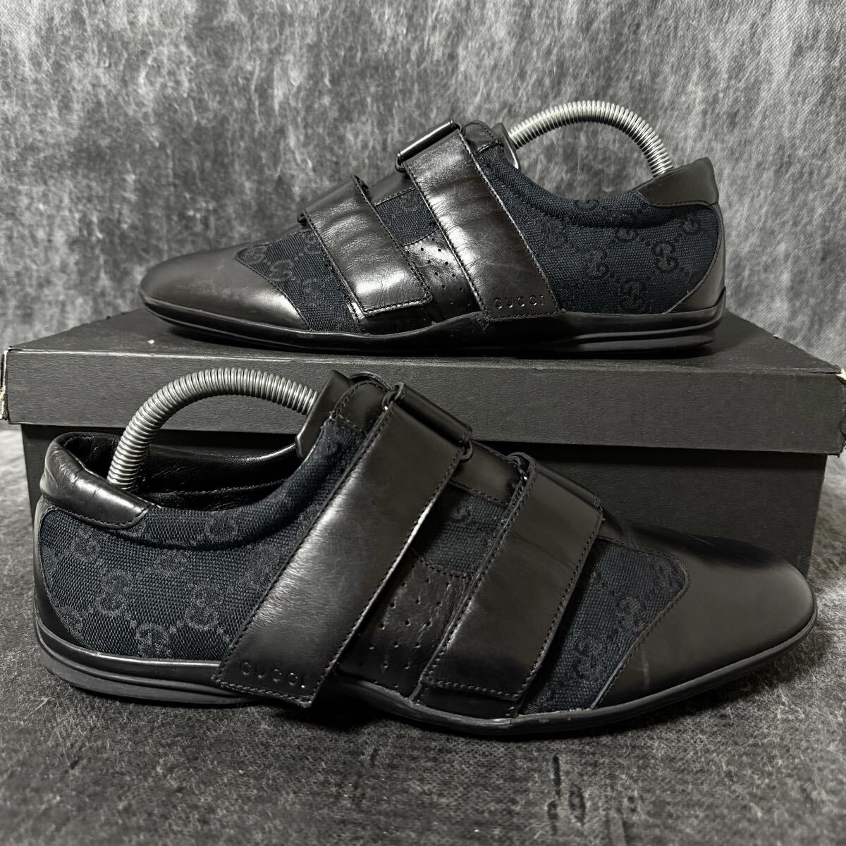 イタリア製 GUCCI GUCCI レザースニーカー ベルクロスニーカー カジュアルスニーカー ブラック系 40 1/2 25.0cm相当 *DP