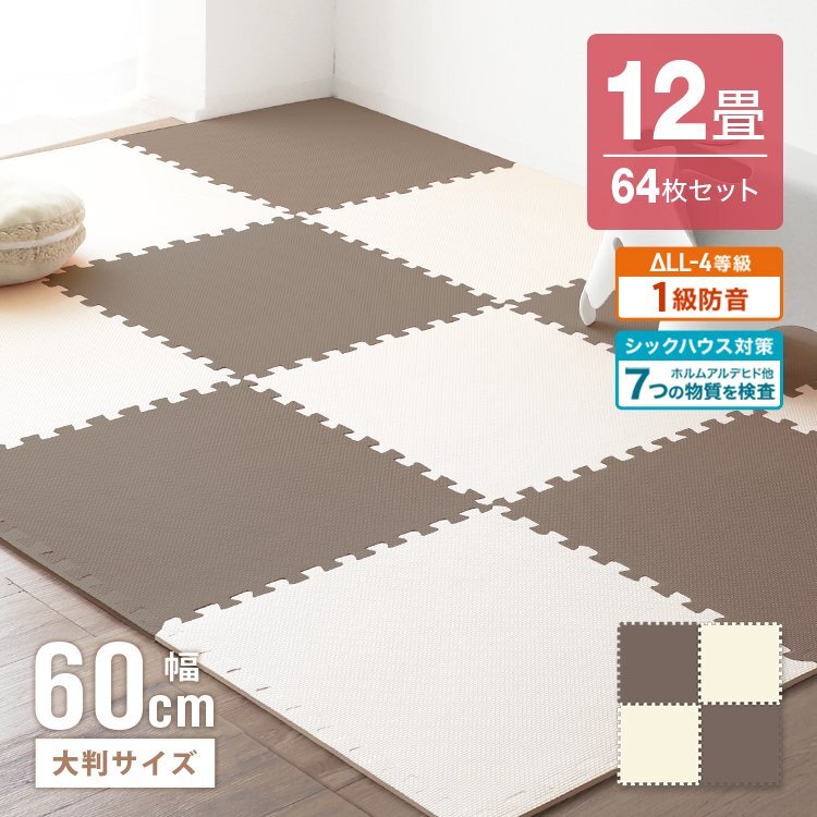 ジョイントマット 64枚セット 12畳 大判 60cm 厚み1cm 床暖房対応 ノンホルムアルデヒド 1級防音 防音対策 サイドパーツ フロアマット 新品