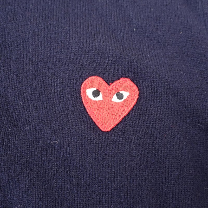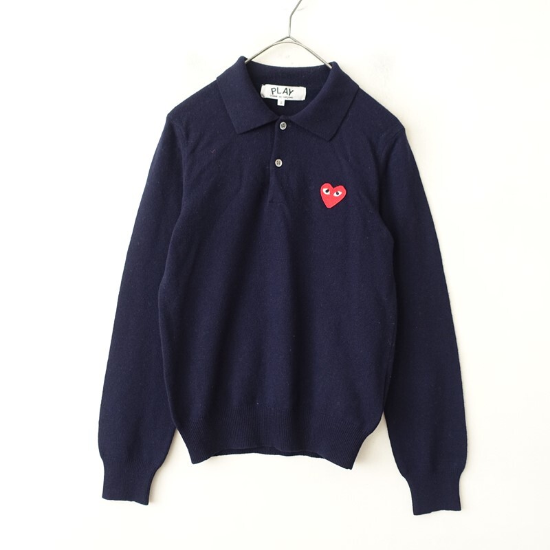 コムデギャルソン PLAY COMME des GARCONS *ウールニットポロシャツ*Sネイビーハートワッペンニットソー(33-2510-726)【72K52】