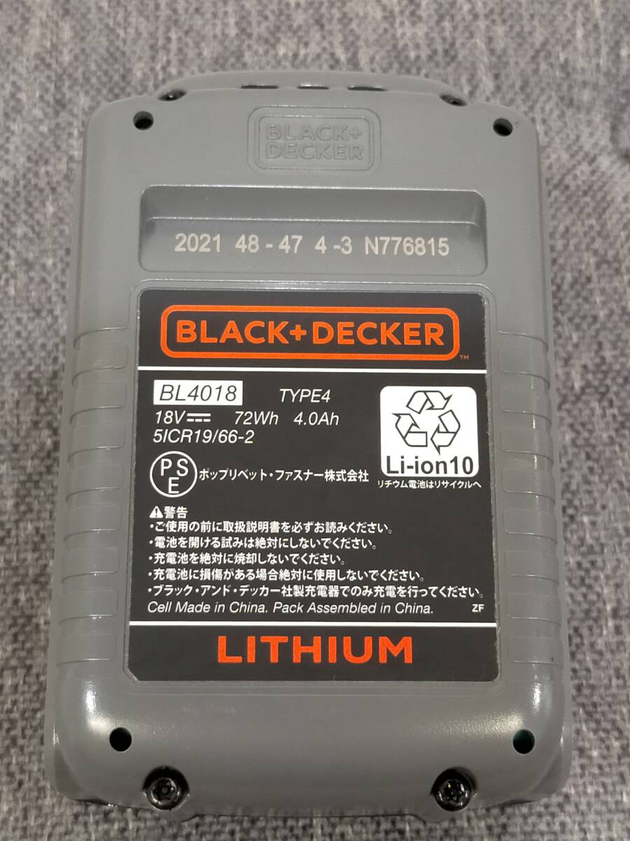 【佐川発送】BLACK+DECKER ブラックアンドデッカーリチウムイオンバッテリーBL4018 グレー