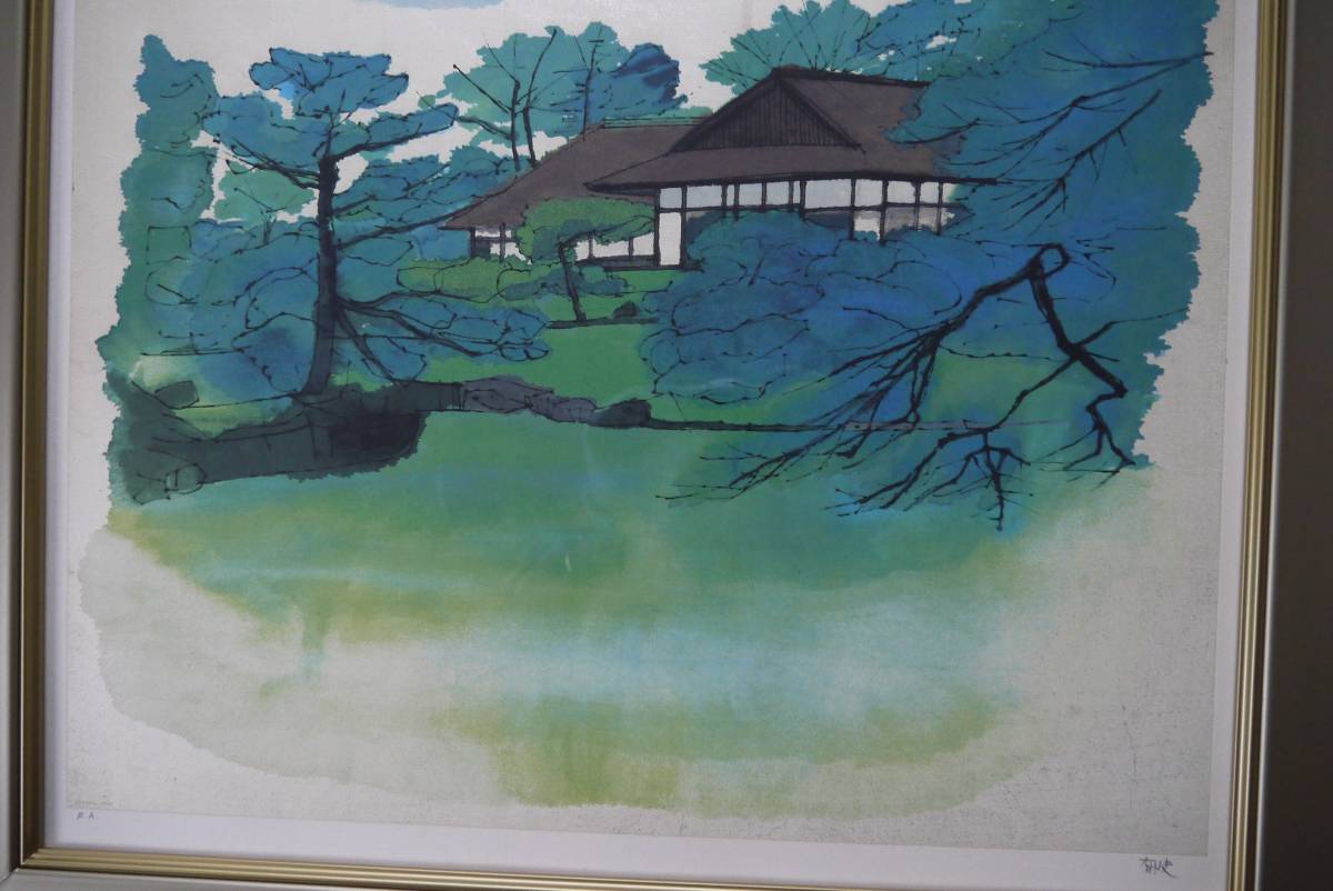 【真作】文化勲章授章* 平山 郁夫 (物故)版画シルクスクリーン「京都 桂離宮」 直筆サイン 額縁裏印刷シール150部の内EA番