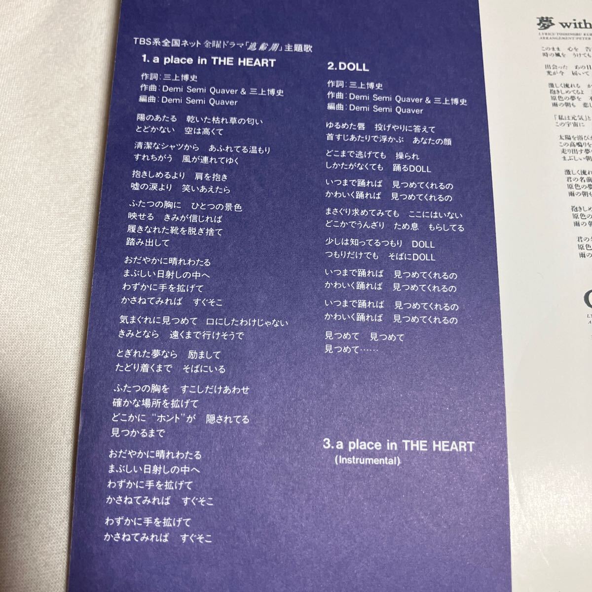 三上博史 短冊型 CD シングル3枚セット! a place in THE HEART、夢 with You、HANG OUT! (ドラマ、チャンス主題・挿入歌 本城裕二)