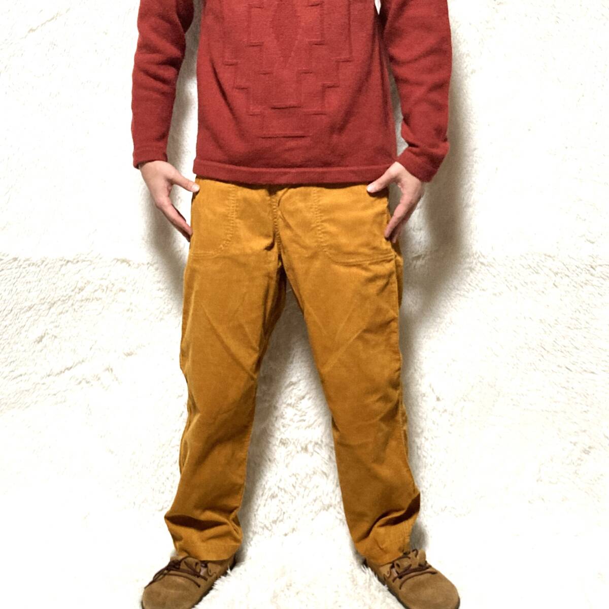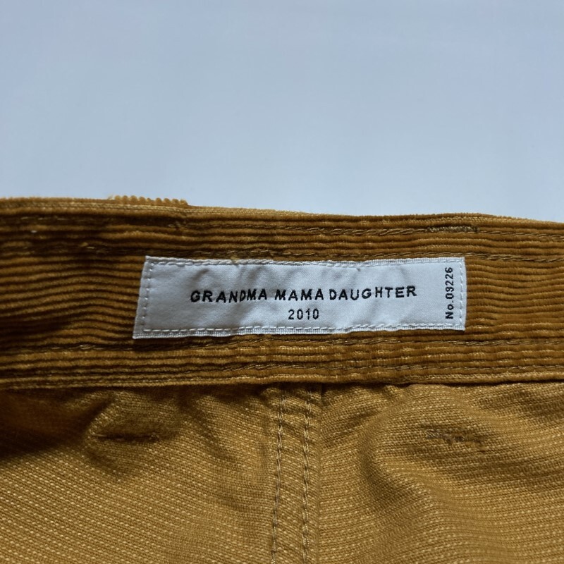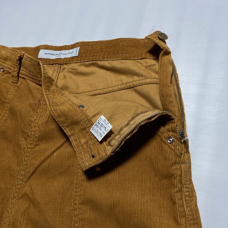 GRANDMA MAMA DAUGHTER★大きめ希少サイズ2★サイドジップ コーデュロイ ワイドパンツ ハイウエスト 茶ベージュ山吹 ユニセックス グランマ