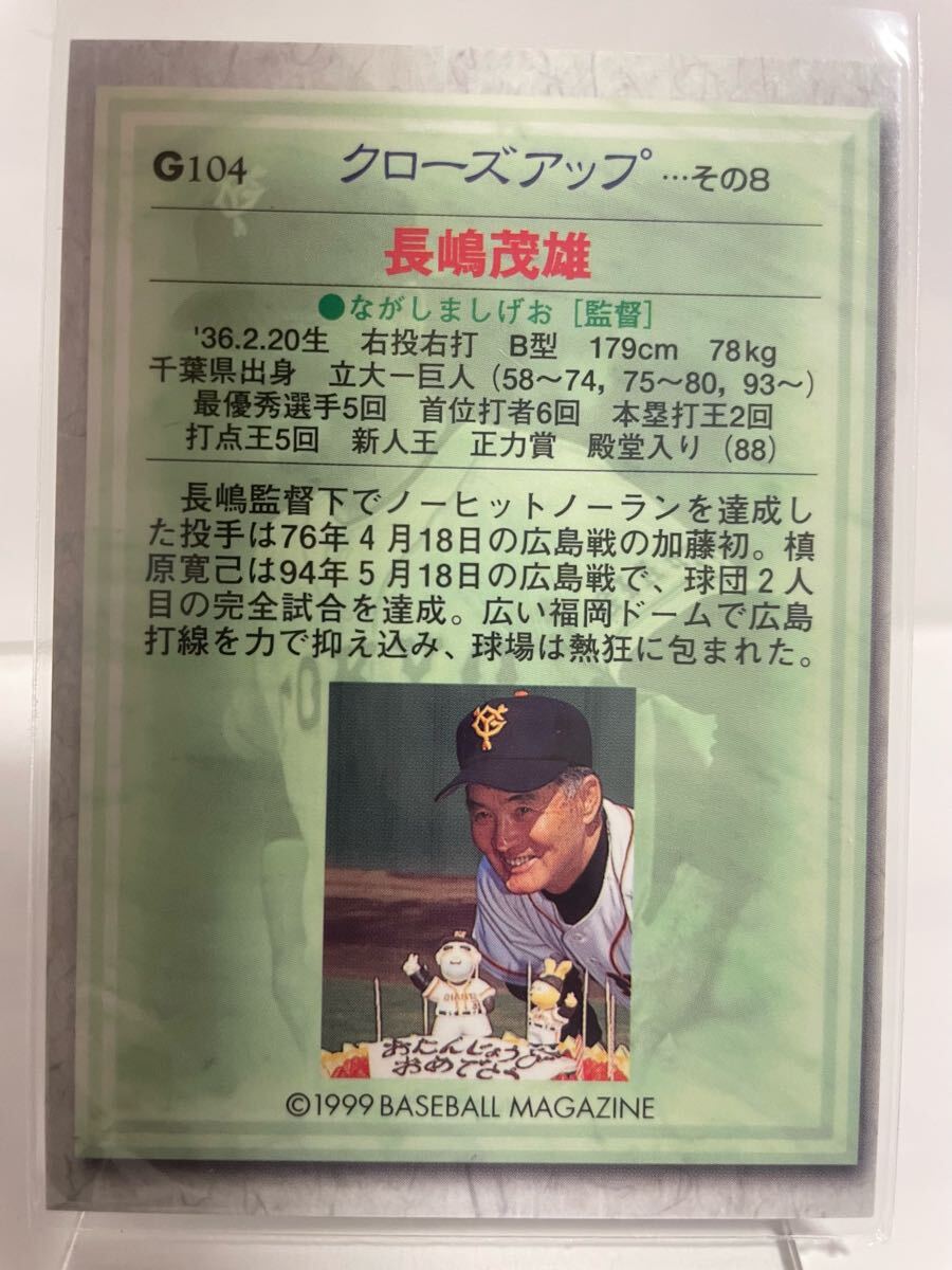 長嶋茂雄 BBM 1999 G104 読売ジャイアンツ 巨人 ベースボールマガジン