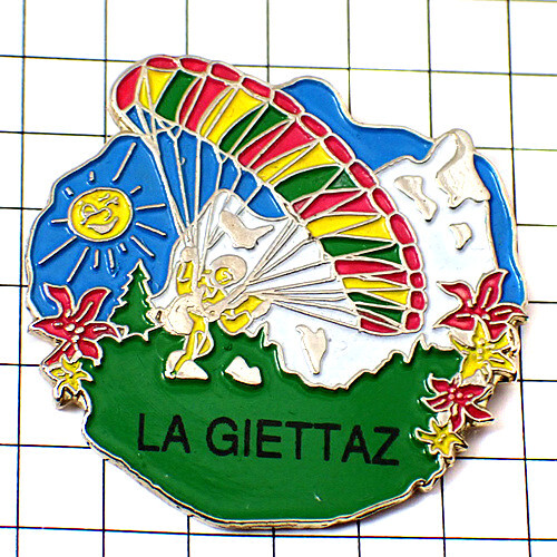 ピンバッジ・アルプス雪山パラグライダーで降り立つ◆フランス限定ピンズ◆レアなヴィンテージものピンバッチ