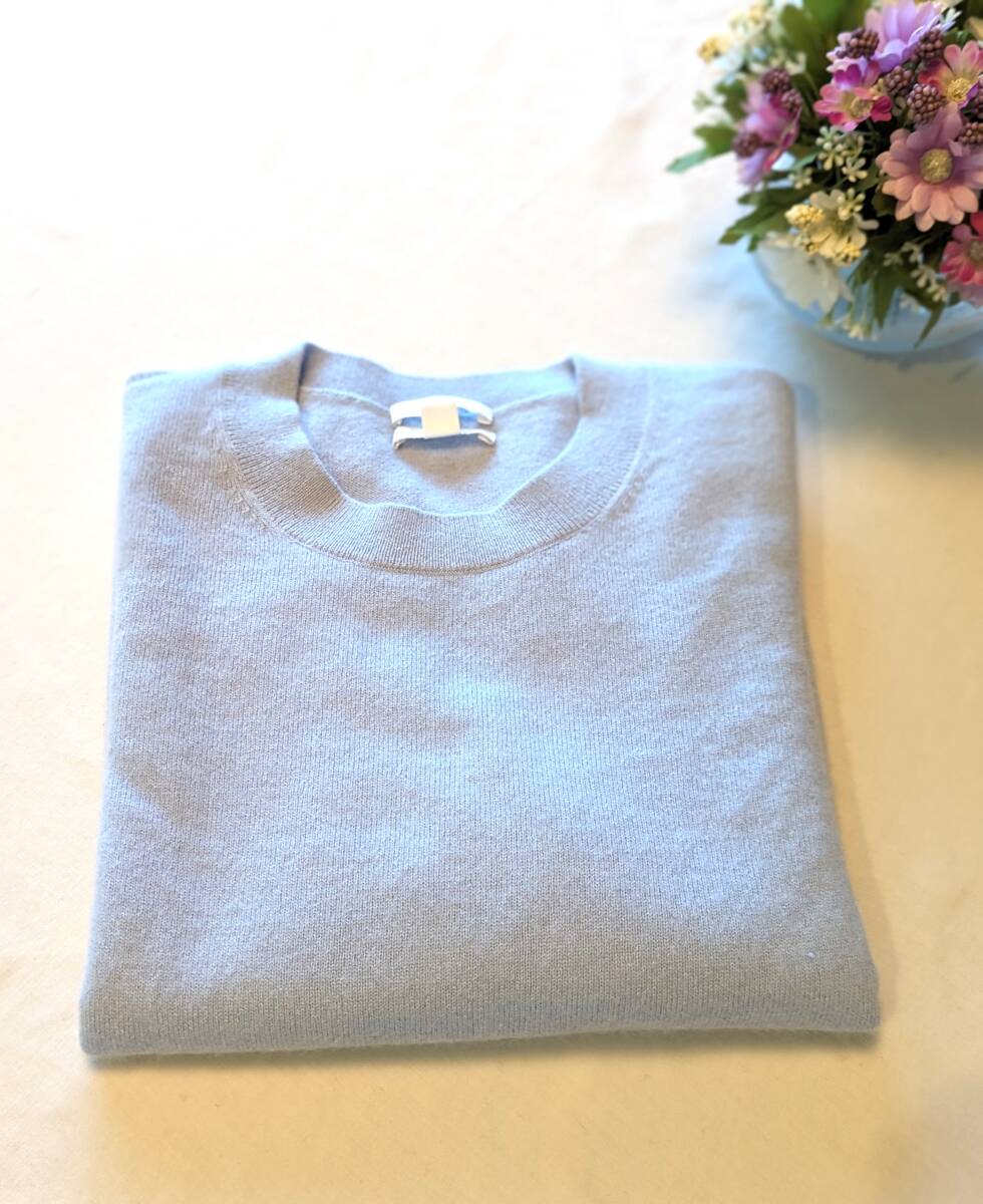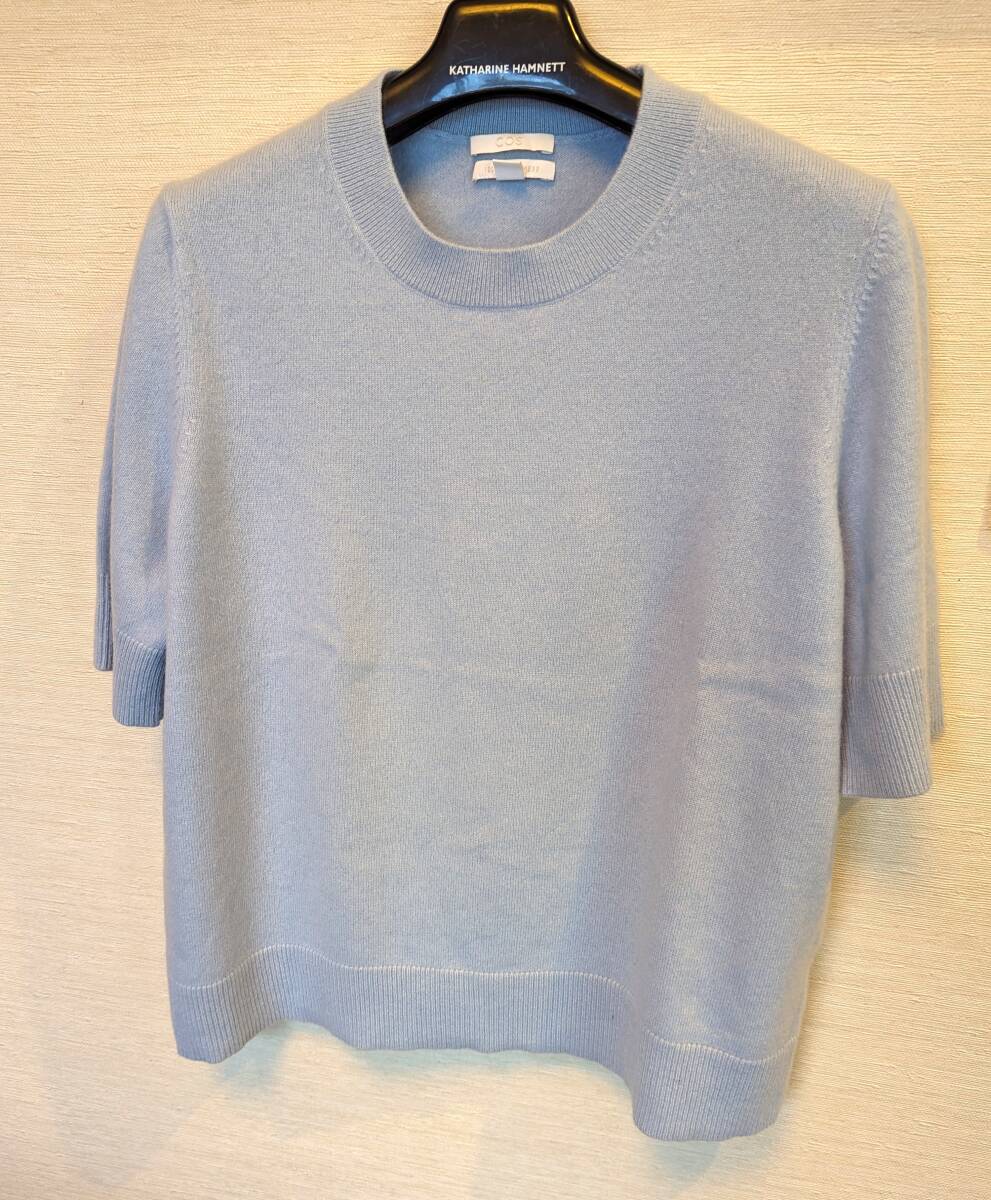 ☆【COS】コス H&M 姉妹ブランド 丸首 半袖 水色カシミア厚手セーター M☆