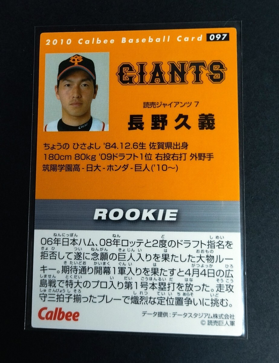 2010年カルビー 第2弾 長野久義(巨人)ルーキーカード!No,097。