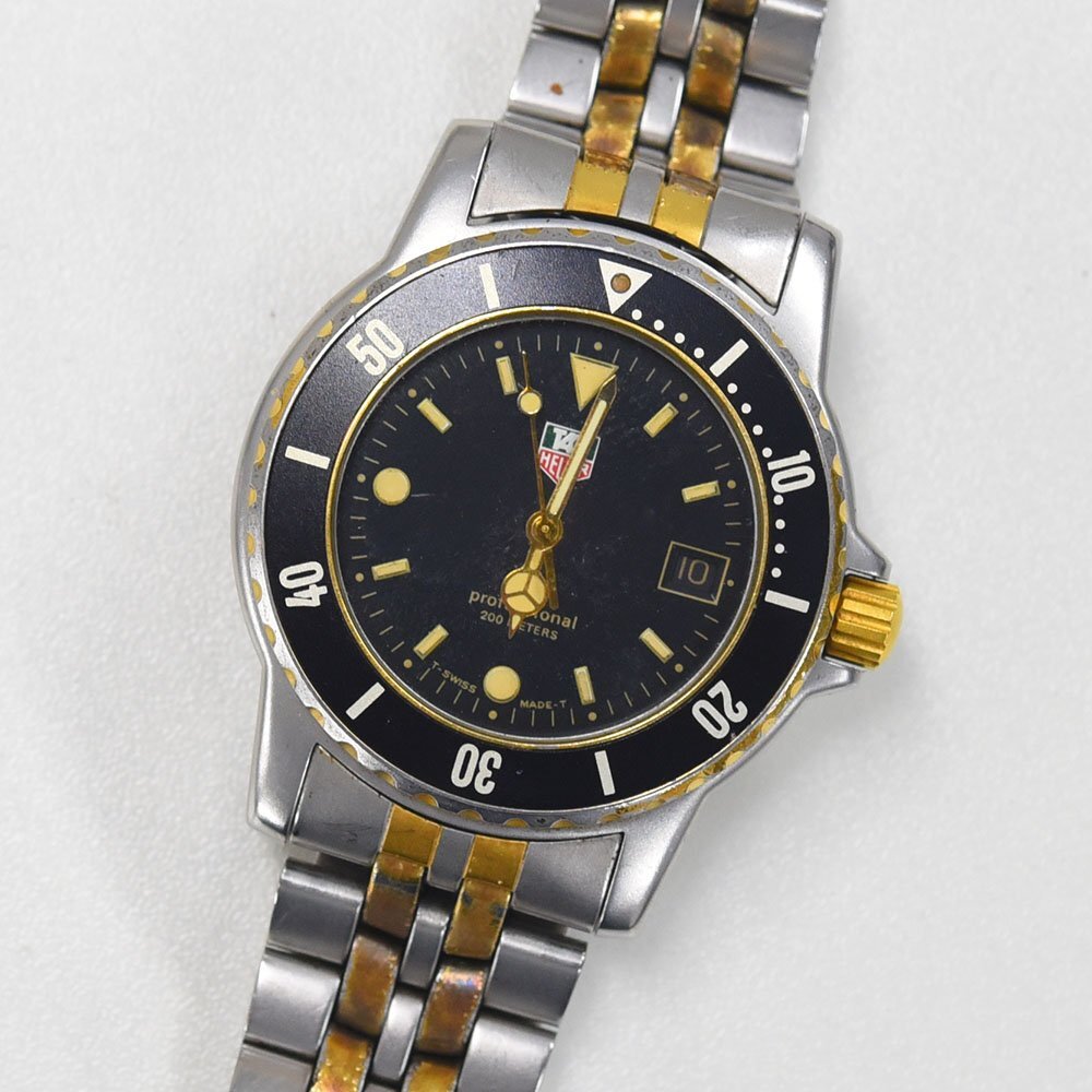 1円 可動品 腕時計 タグホイヤー TAG HEUER プロフェッショナル200 925.213G クォーツ メンズ ブラック 同梱不可