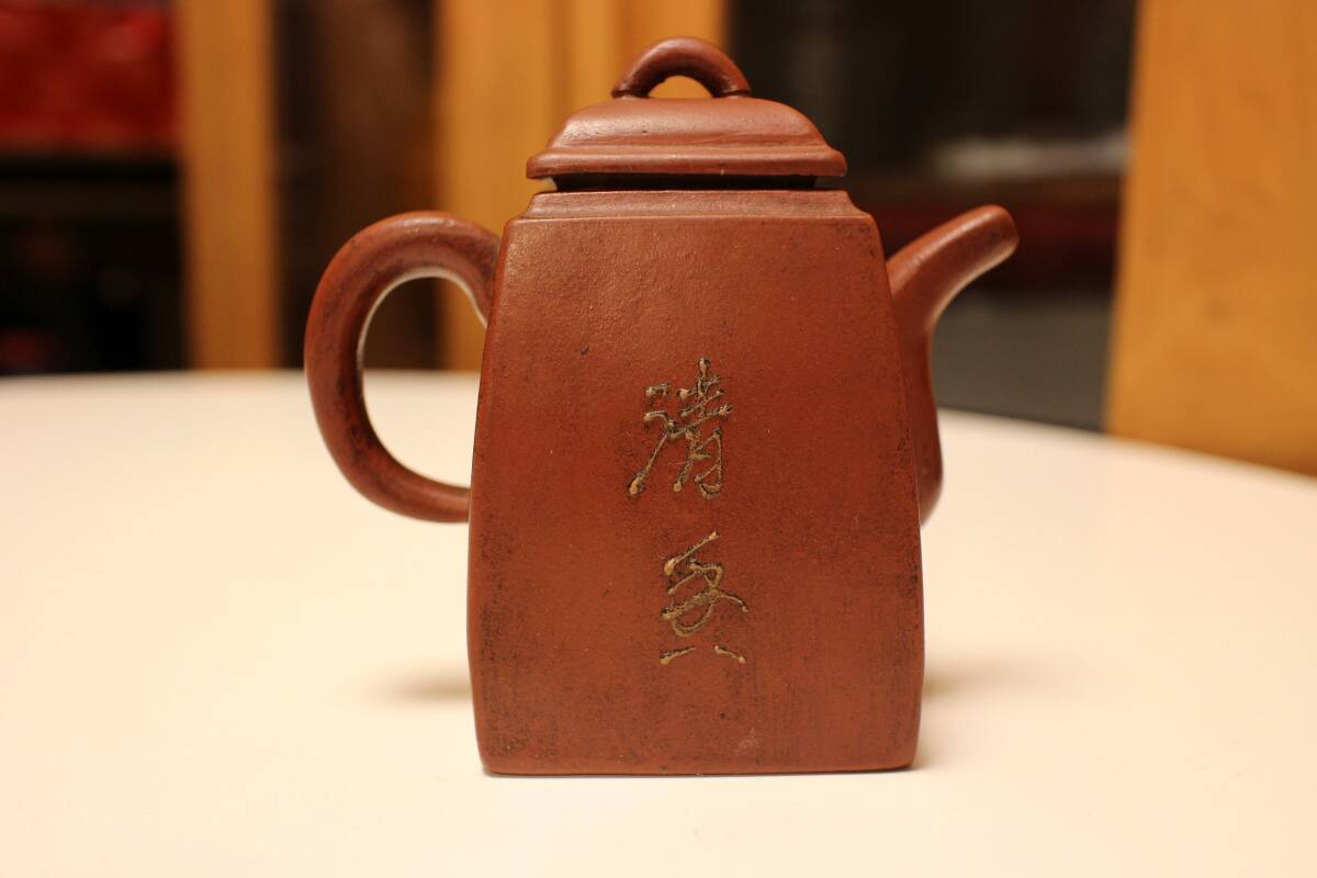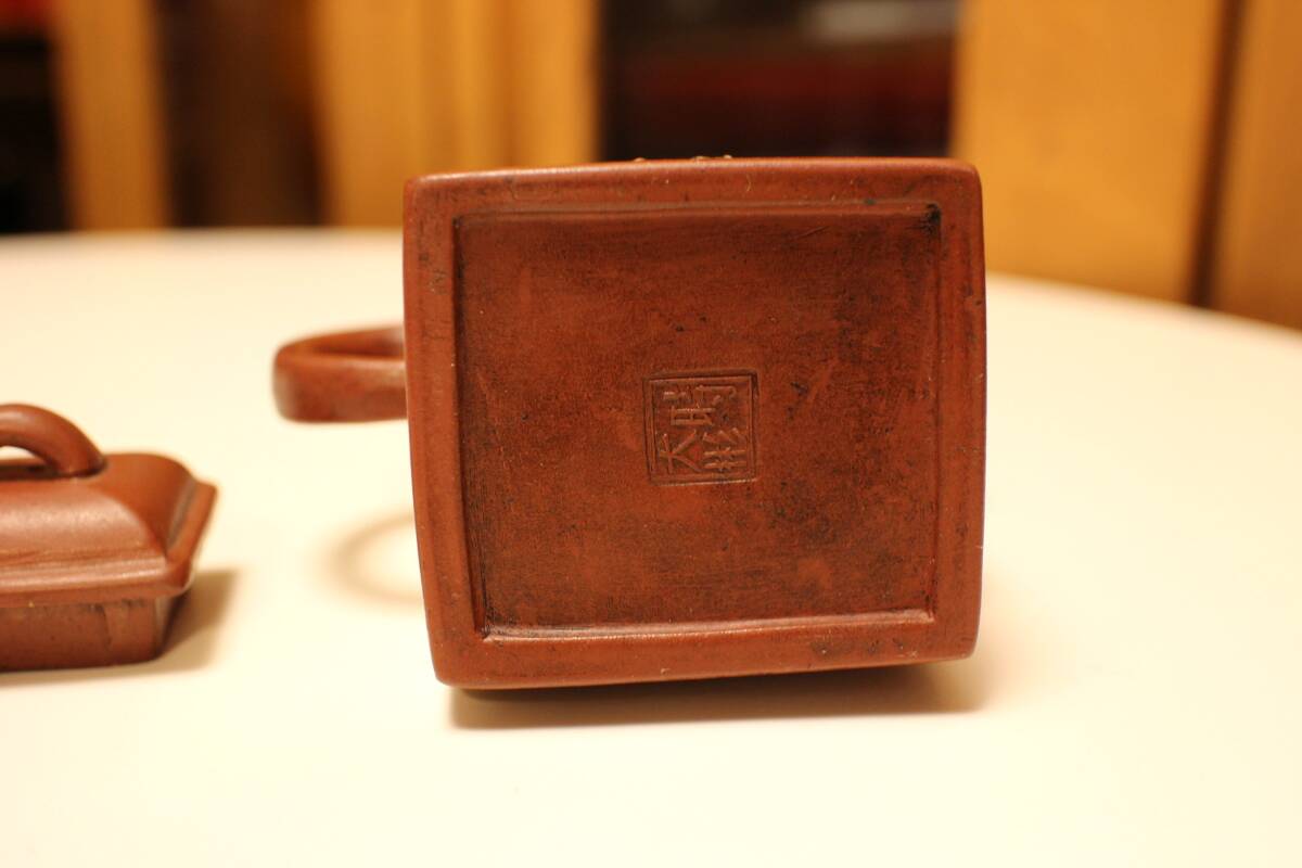 唐物 紫砂方壺 急須 時大彬在銘 状態良好,模作と考えられます。 /中国宜興朱泥茶碗唐物煎茶具鉄瓶銀瓶茶托茶筒湯沸掛軸純銀