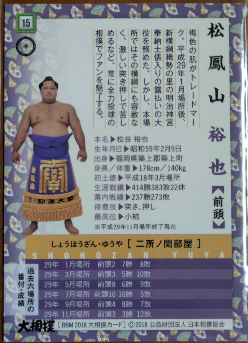2018BBM 大相撲カード 松鳳山裕也(前頭) レギュラーカード