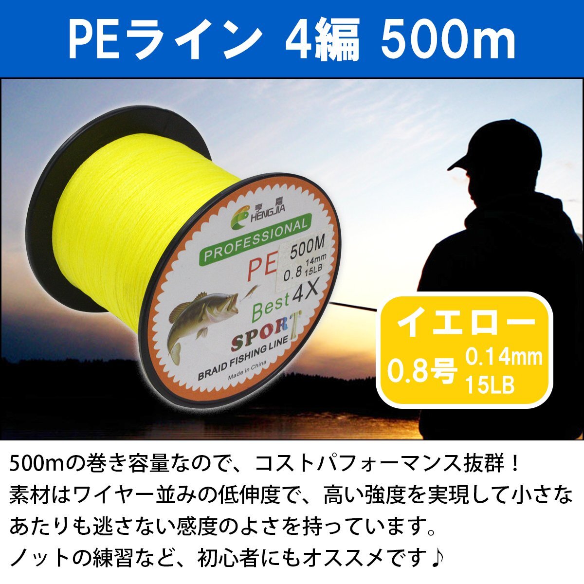 500m PEライン 0.8号/15lb 4編 黄色/イエロー 投げ釣り 船釣り エギング ジギング タイラバ 船 深海 ルアー シーバス 釣り糸 リール