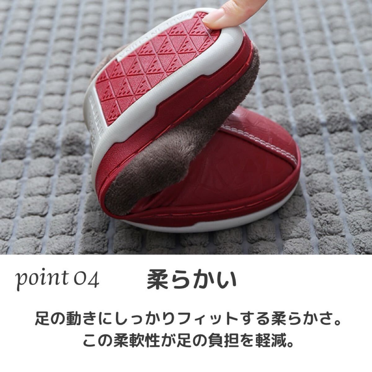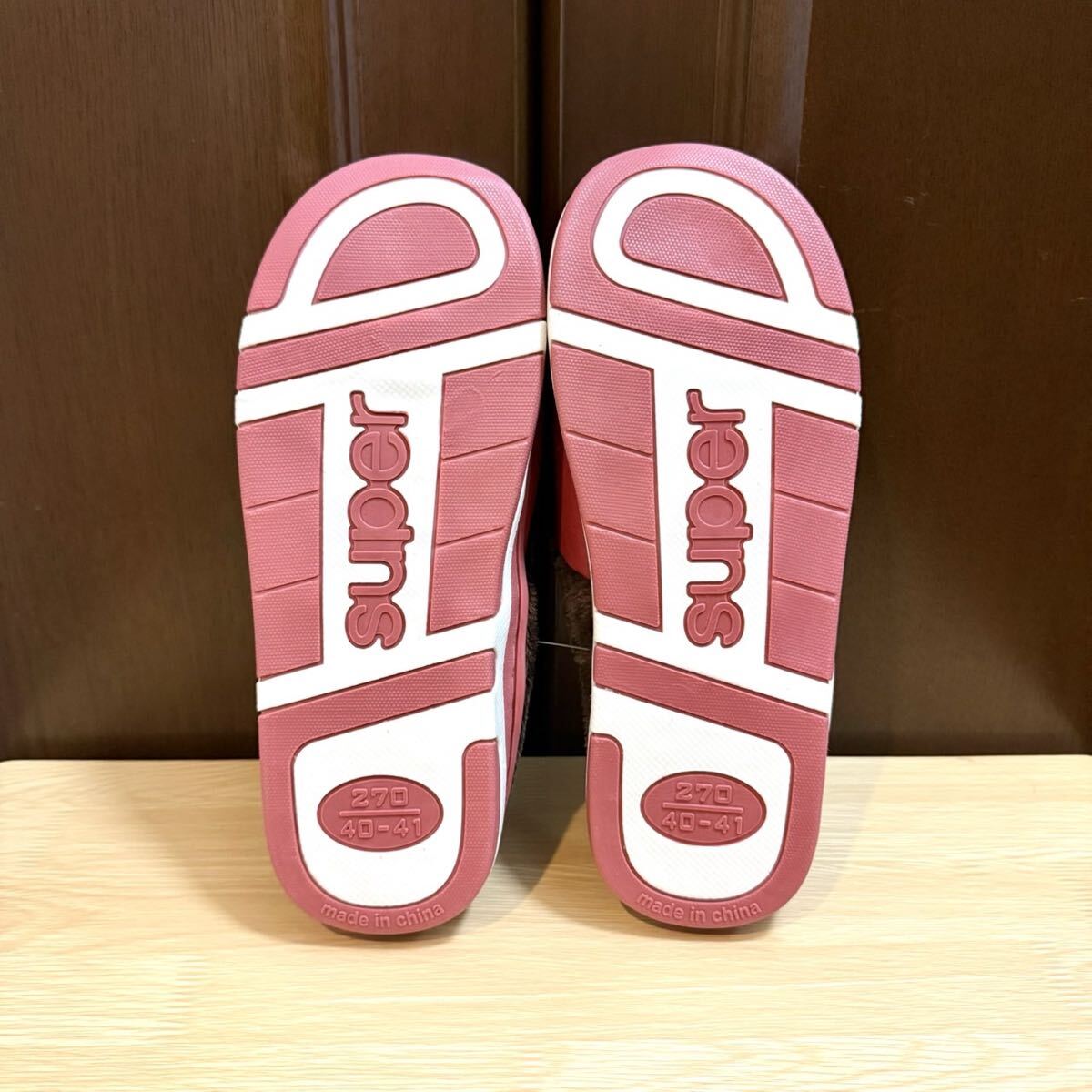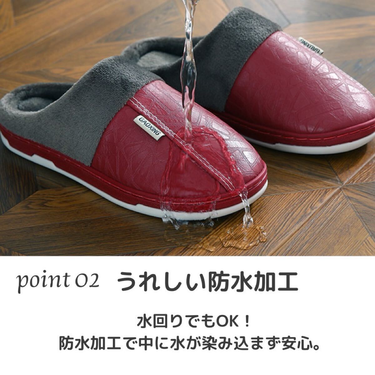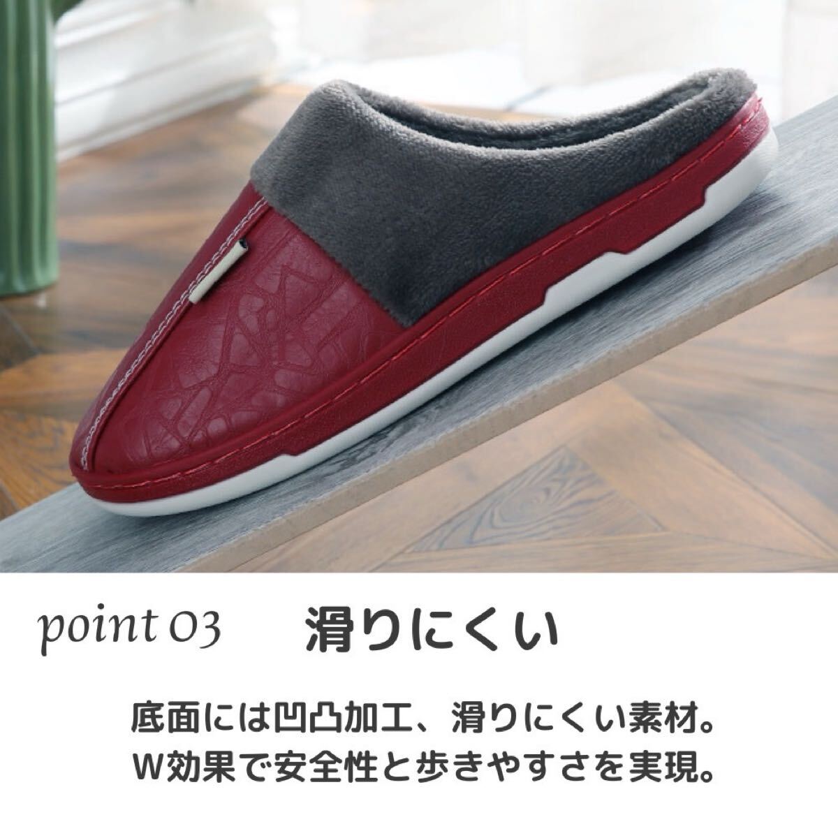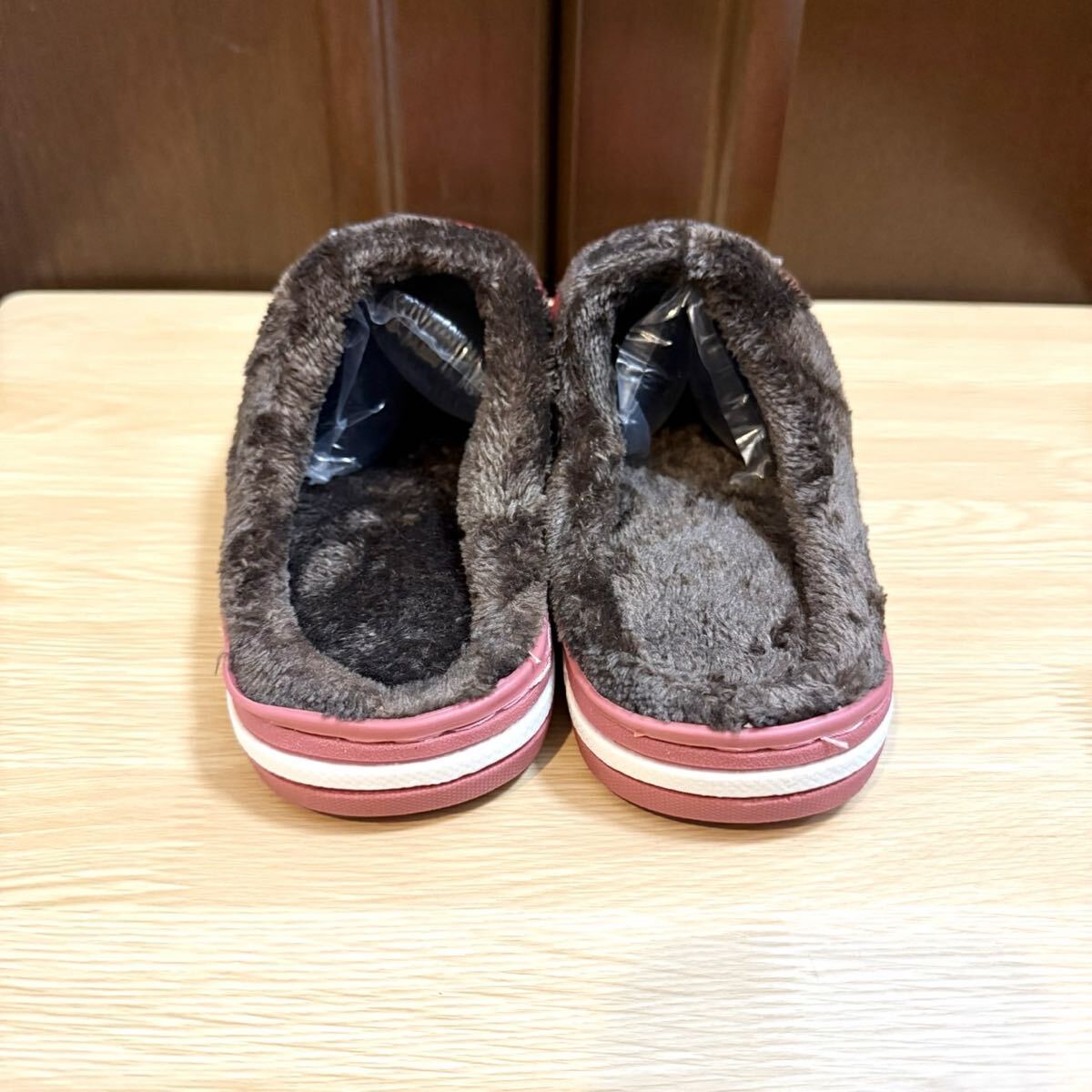 ルームスリッパ ルームサンダル 裏ボア 防水 レザー調 ふわふわ ボア あったか レッド 24.5〜25.0