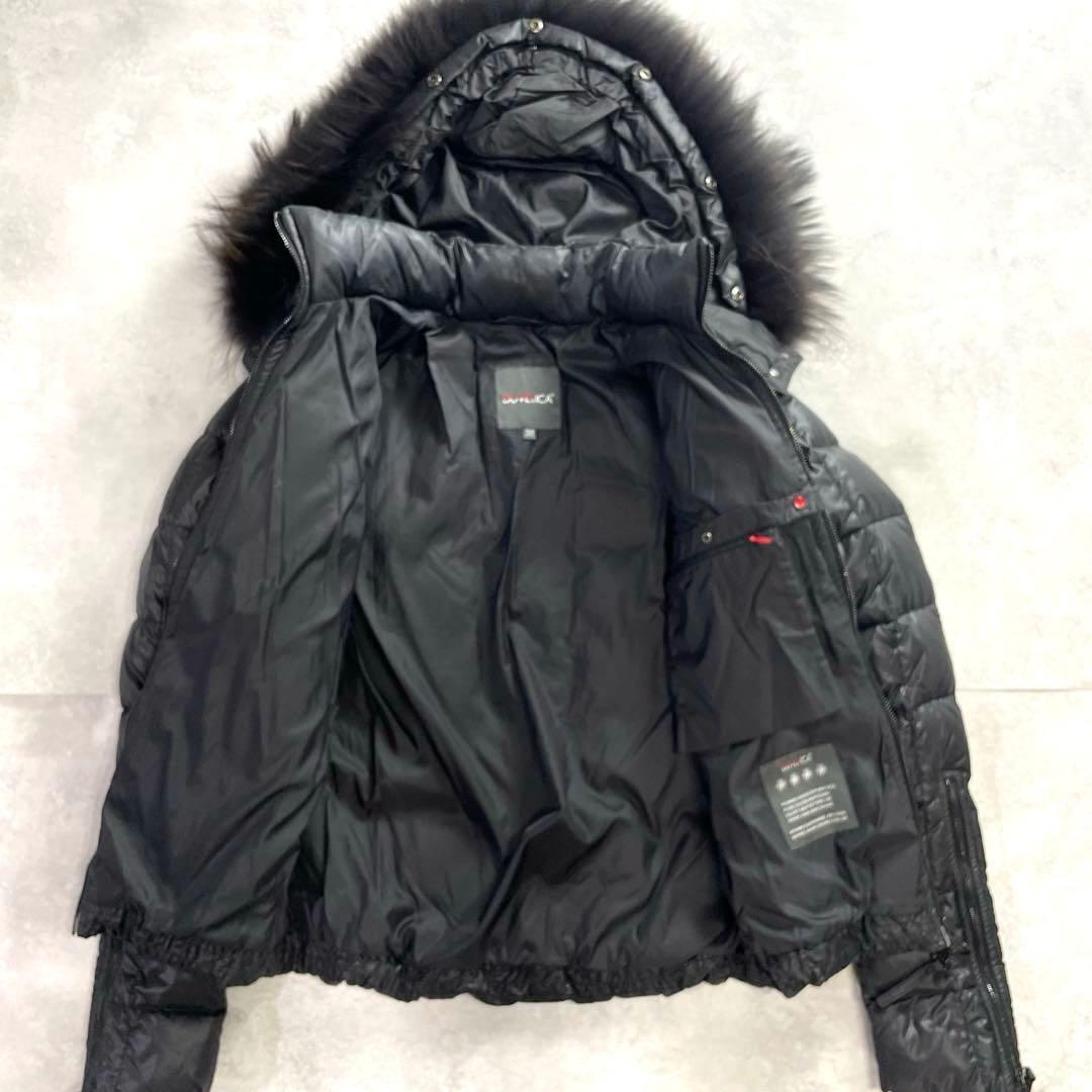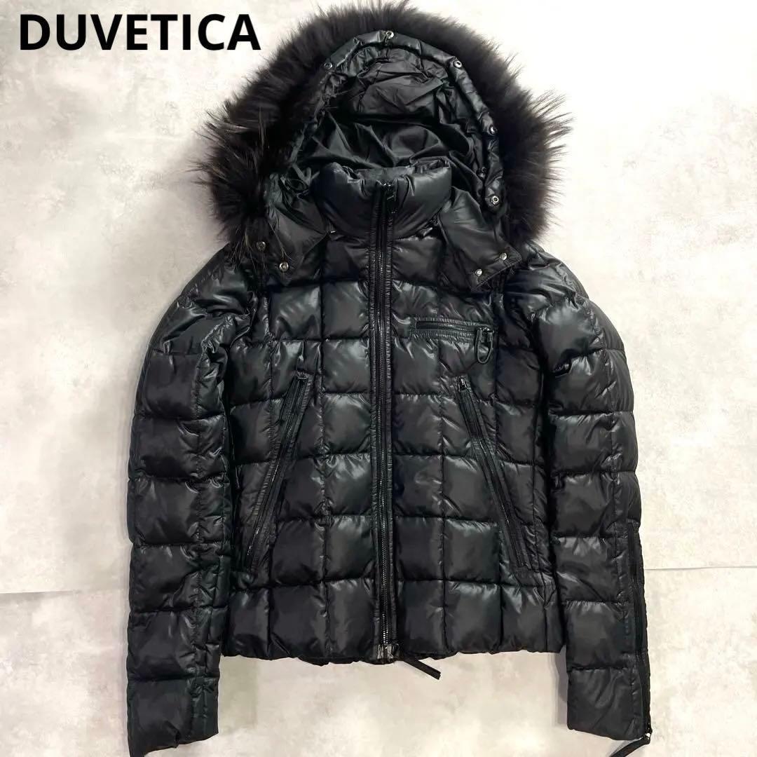 極美品 DUVETICA デュベティカ ダウンジャケット グースダウン フード ファー 黒 ブラック 38 M キルティング レディース 防寒