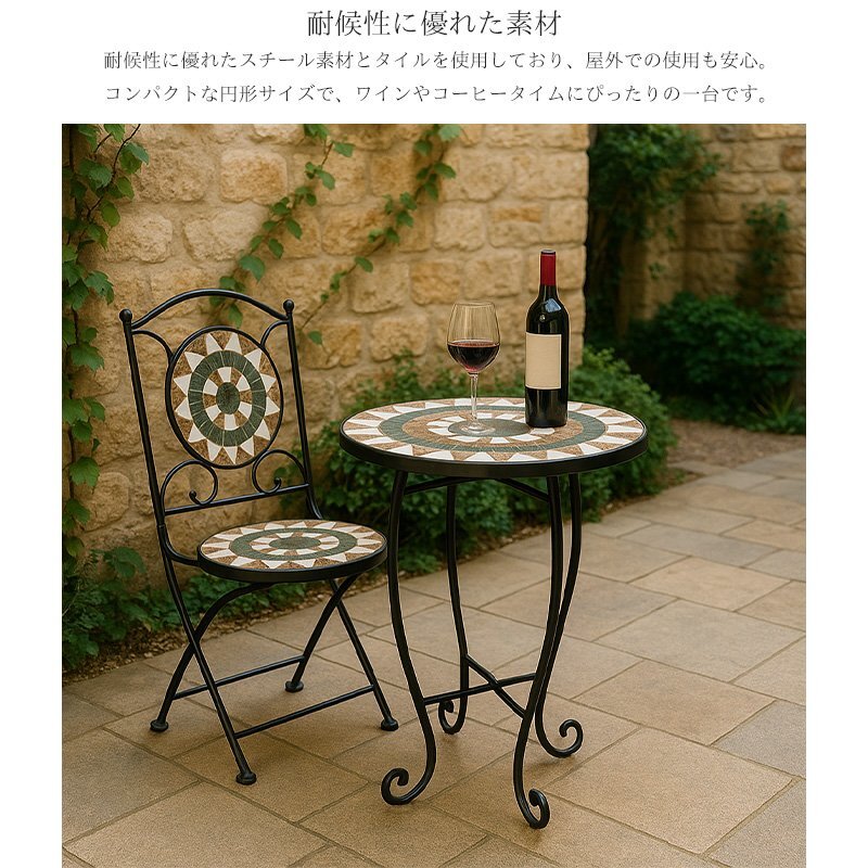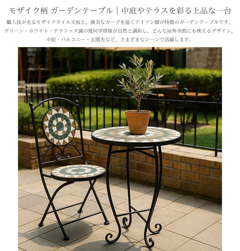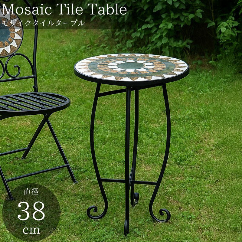 1円 モザイクタイル ガーデン テーブル 北欧 38Φ 高級 カフェ風 海外 ガーデンファニチャー エクステリア ホテルライク モダン GCT-09