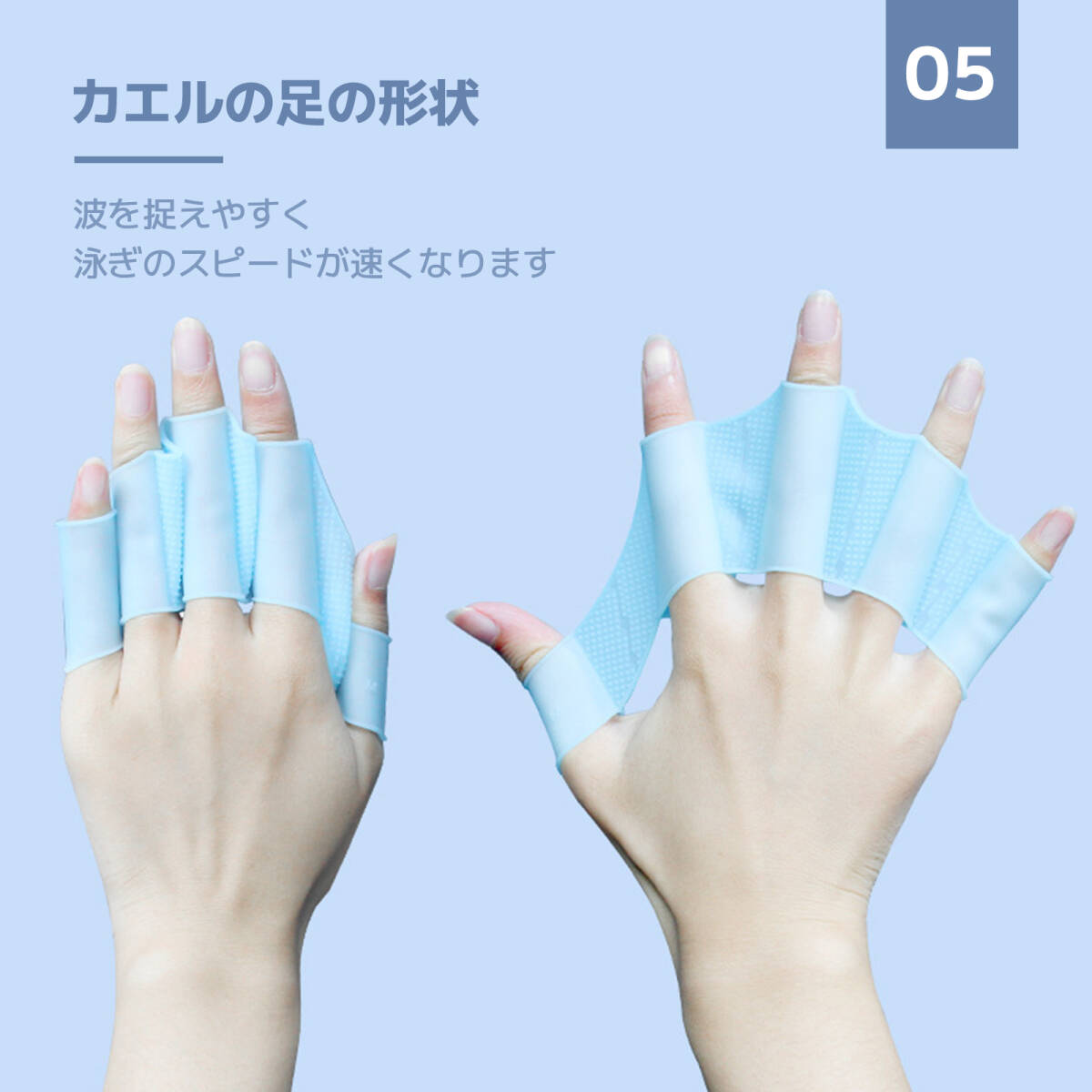フィンガーパドル 水かき グローブ 水泳 サーフィン ボディボード パドリング 水泳用具 水色 ;J976;