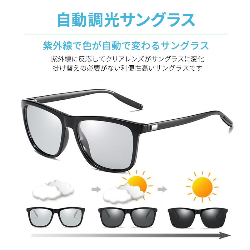 偏光サングラス 調光 レンズ 変色 UVカット 紫外線 おしゃれ メンズ レディース 自動調光 ドライブ キャンプ 釣り 運転 ゴルフ メガネ 眼鏡