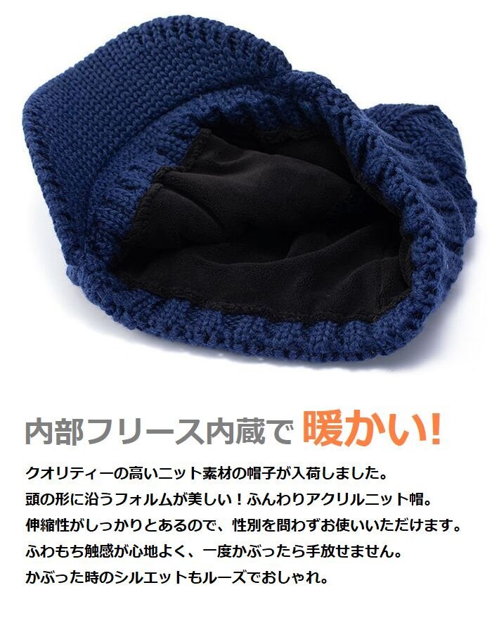 ニット帽 ニットキャップ メンズ レディース フリース内蔵 帽子 つば付き ハンチング ハンチングキャップ 7986979 普通サイズ M 新品