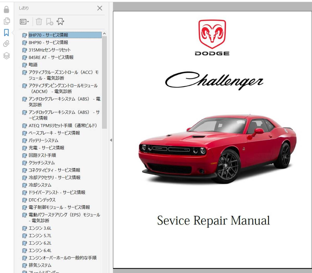ダッヂ チャレンジャー 2015-2016 ワークショップマニュアル Ver2 整備書 ボディー修理 修理書 配線図 ダッジチャレンジャー