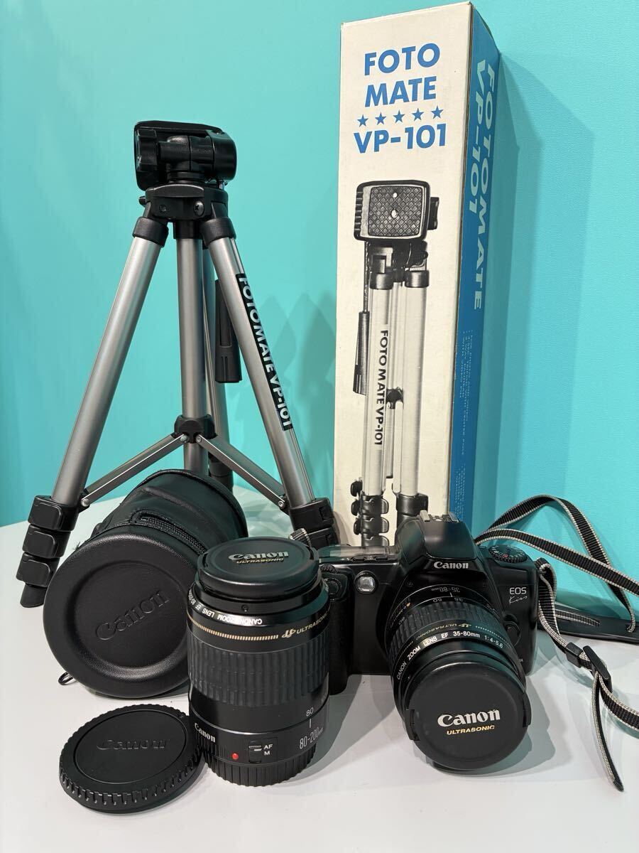 Canon キャノン EOS Kiss フィルムカメラ EF 35-80mm 1:4-5.6 Ultrasonic 動作未確認 EF 80-200mm F 1:4.5-5.6 ズームレンズ 三脚 セット