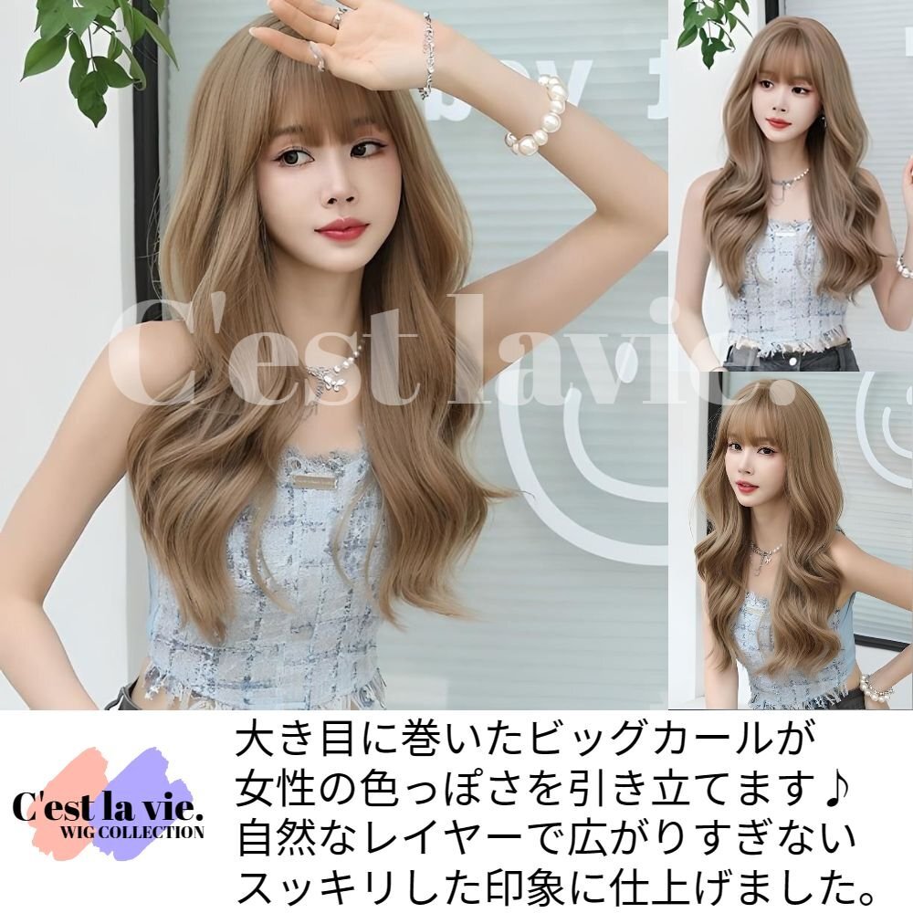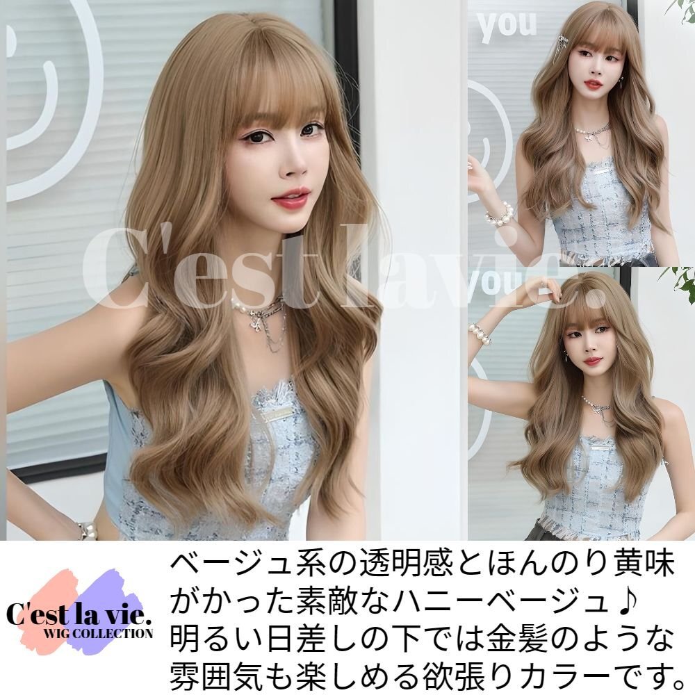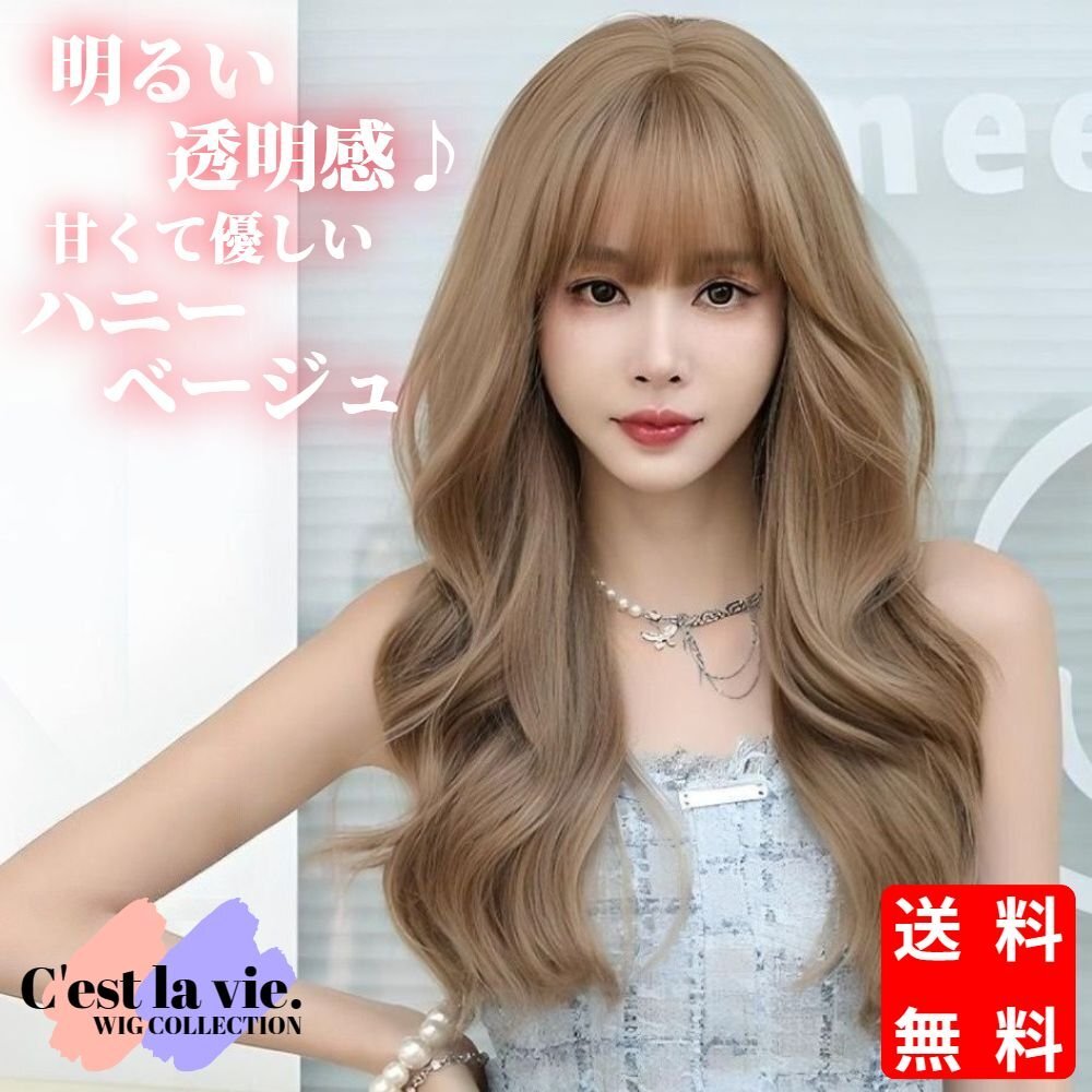 ウィッグ ロング ウェーブ カール ハニー ベージュ フルウィッグ 前髪あり 医療用 かつら 自然 バレない 即日出荷 送料無料