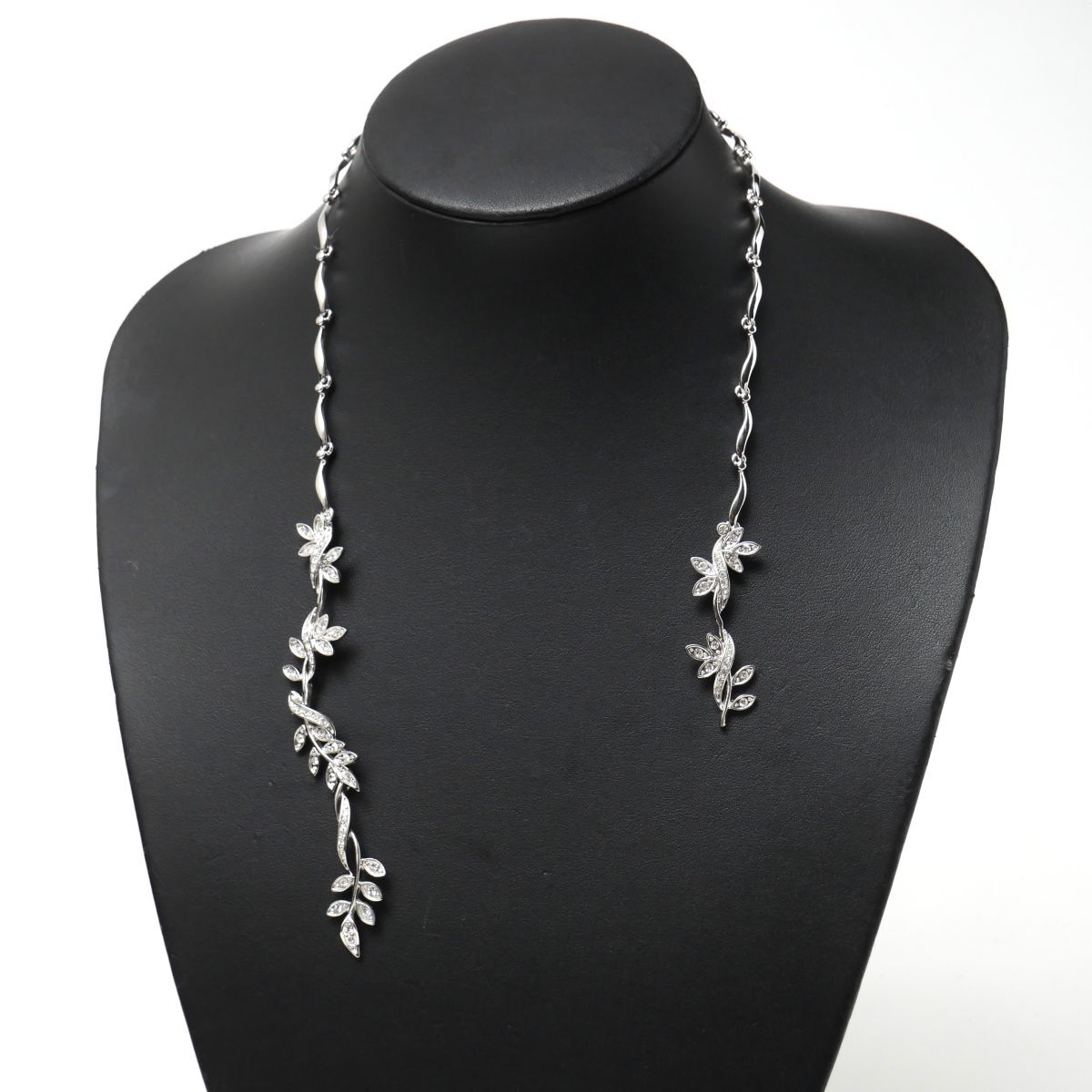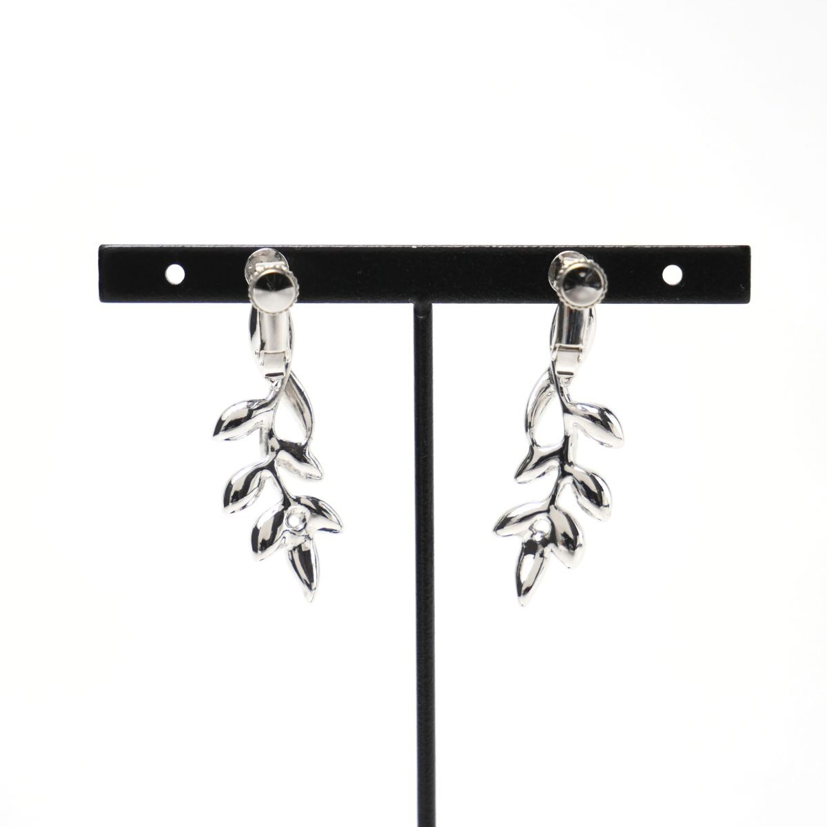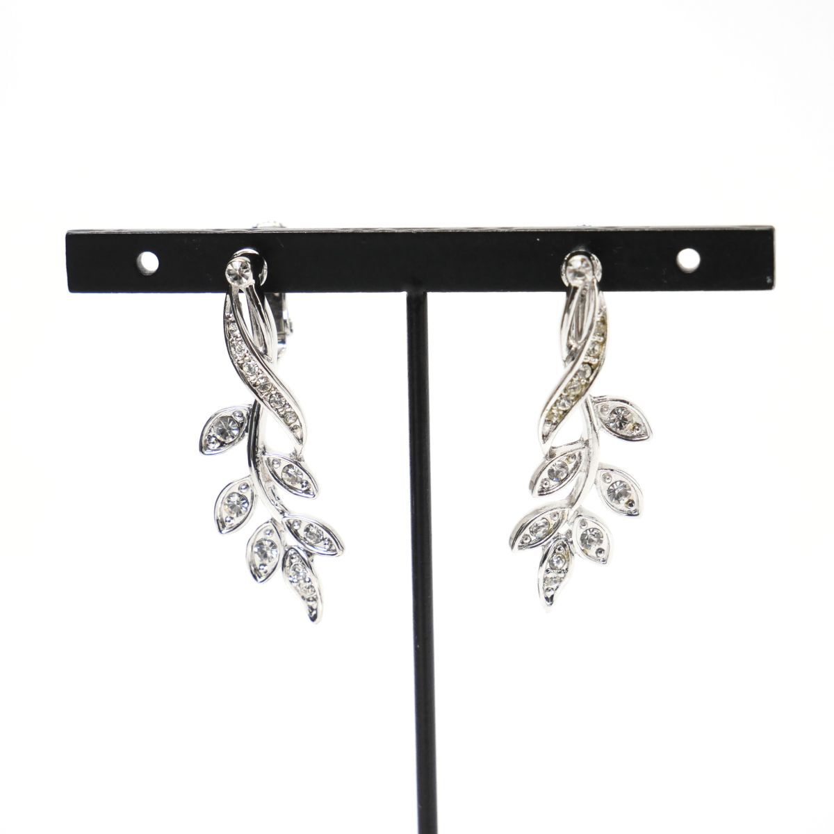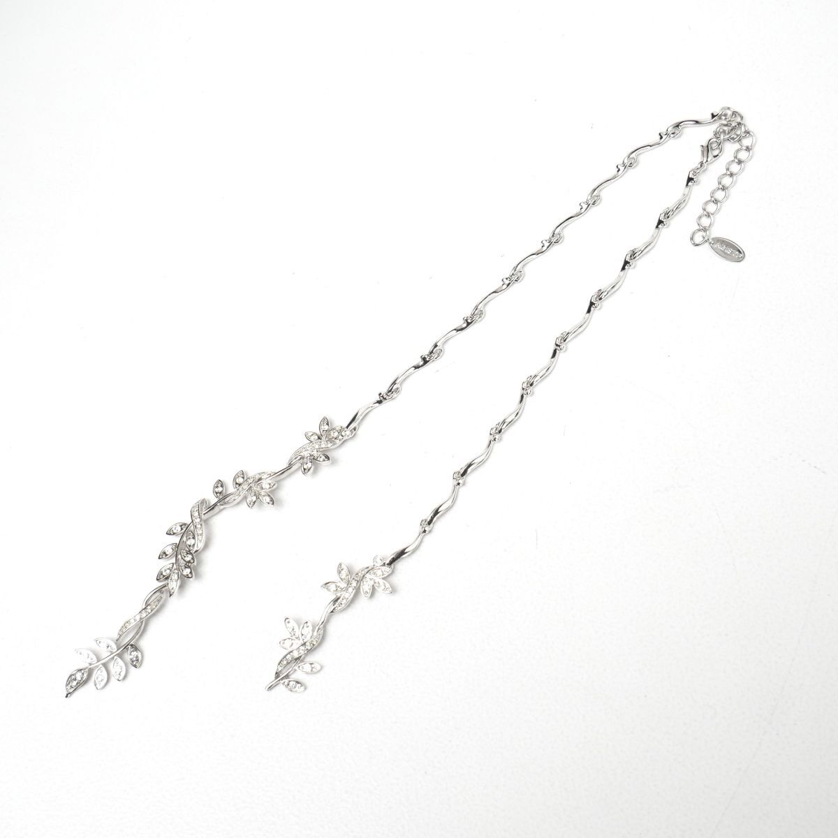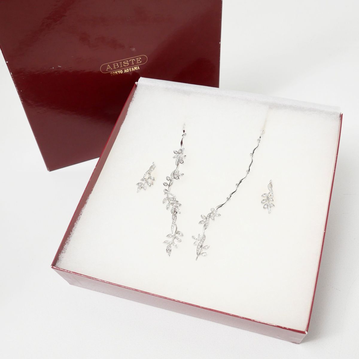GS5641▽アビステ/ABISTE*2点セット*リーフモチーフ* ラインストーン*ネックレス/ネジバネ式 イヤリング*アクセサリー*シルバー系