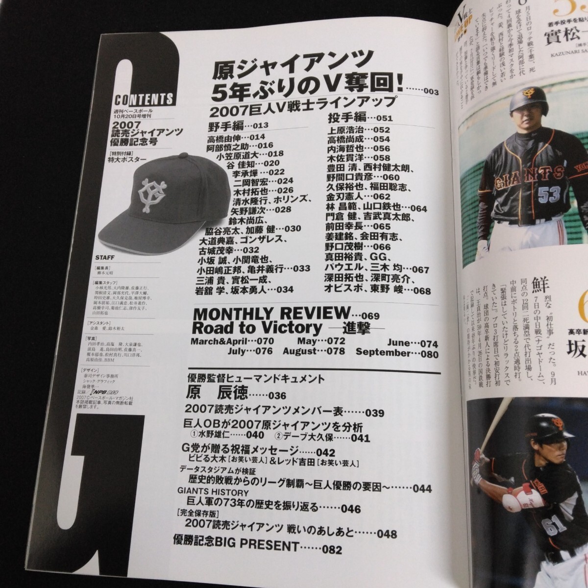Ed-281/週刊ベースボール10月20日号増刊 読売ジャイアンツ優勝記念号 原ジャイアンツ5年ぶりのV奪回!/L6/70127
