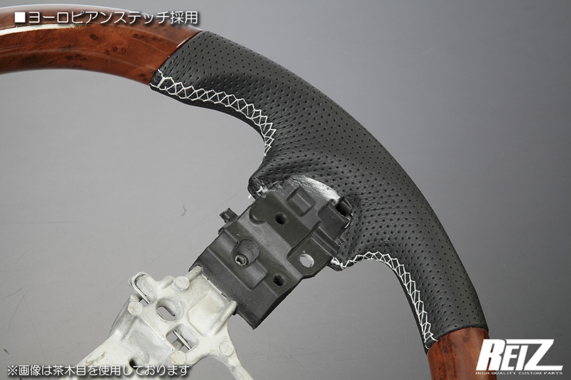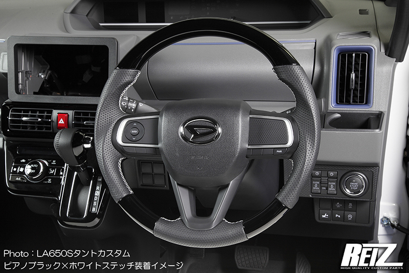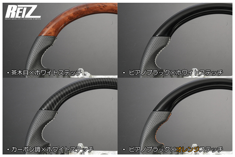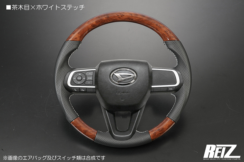 [茶木目×白ステッチ] LA650F/LA660F シフォン/シフォンカスタム コンビステアリング ガングリップ仕様 純正交換式 コンビハン