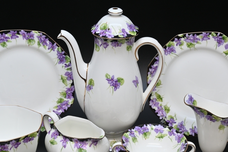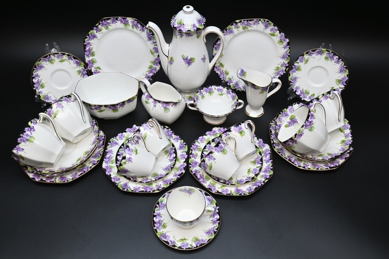 ビンテージ ロイヤルドルトン■すみれ セット[ポット/カップ &ソーサー 大4客小5客]■シュガーボウル/クリーマー/ケーキ皿他1900年初期.