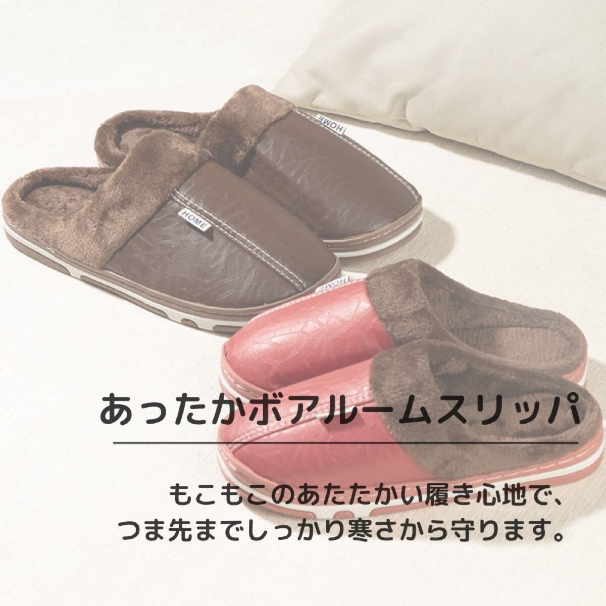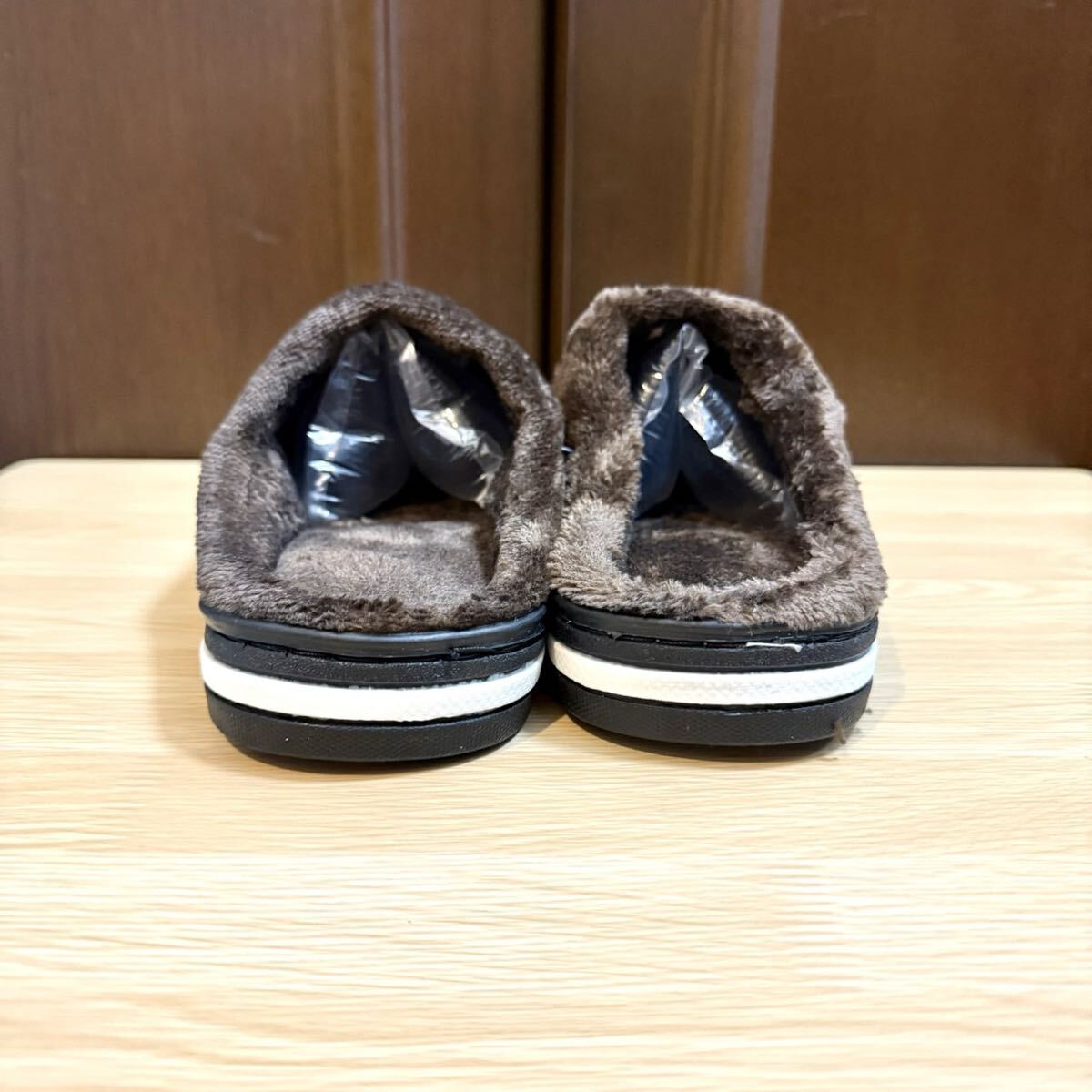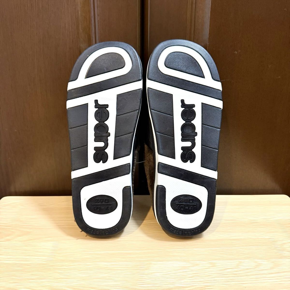 ルームスリッパ ルームサンダル 裏ボア 防水 レザー調 ふわふわ ボア あったか ブラック 26.5〜27.0