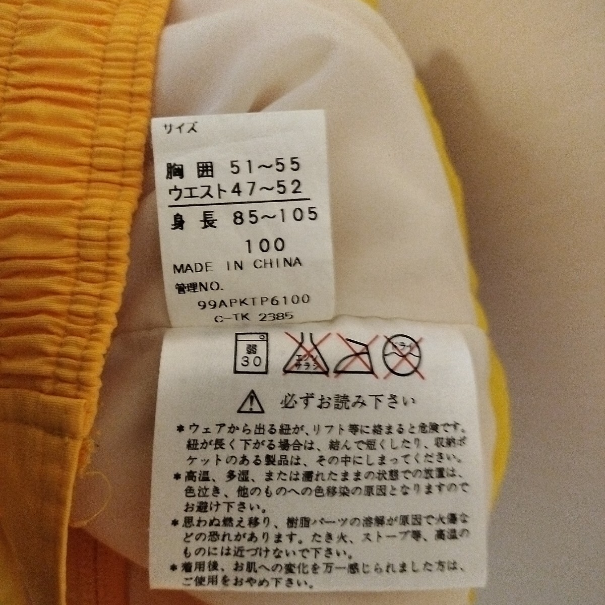 スキーウェア 100 サイズ調整可能 男女兼用 ピングー 黄色 防寒 フェニックス 雪遊び スノボ 上下セット キッズ