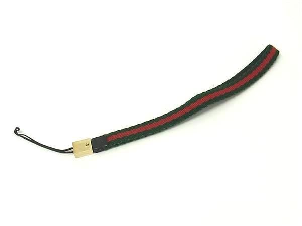GUCCI グッチ シェリーライン ナイロンキャンバス ストラップ キーホルダー レディース メンズ グリーン系×レッド系 DK3448